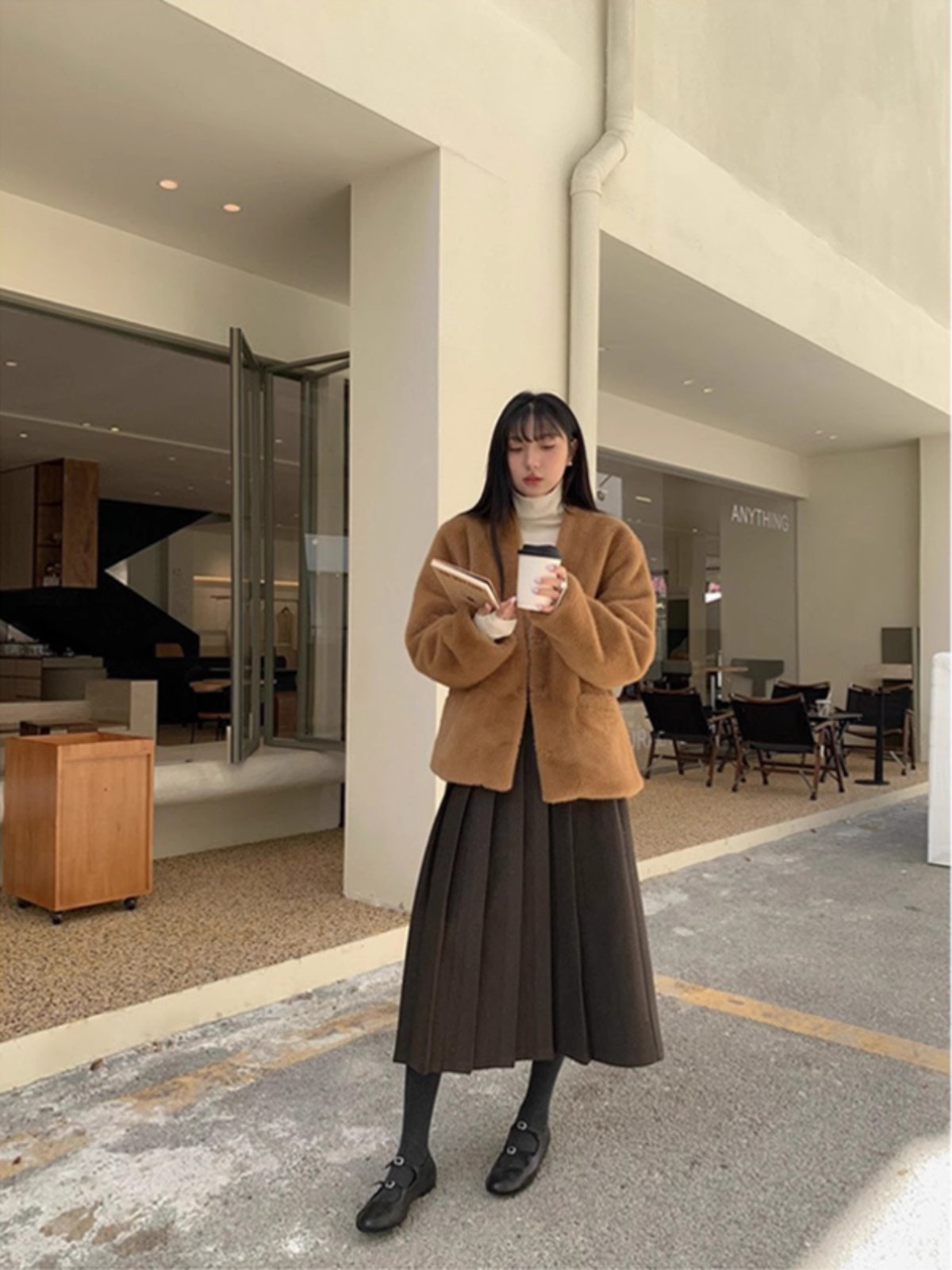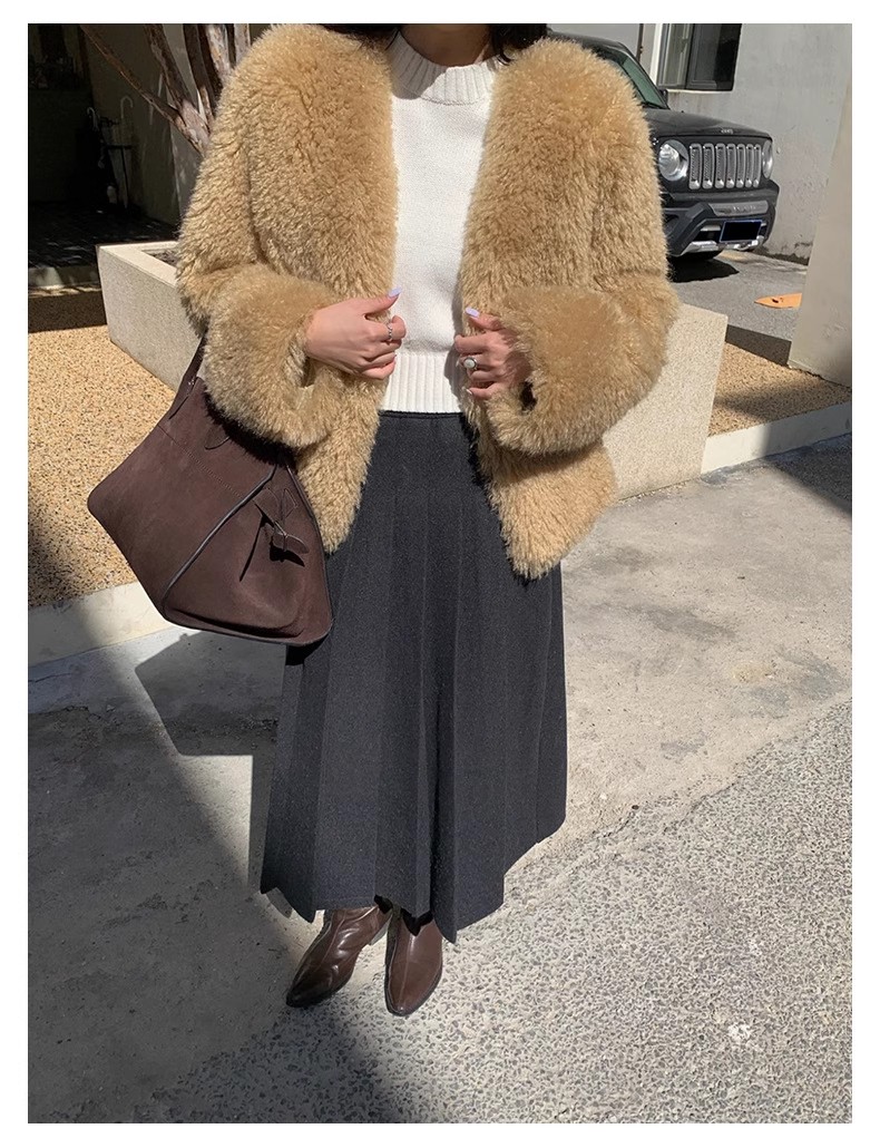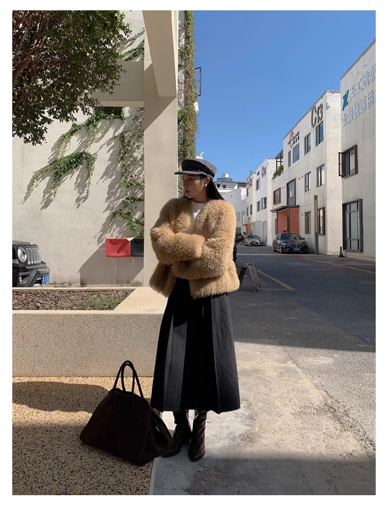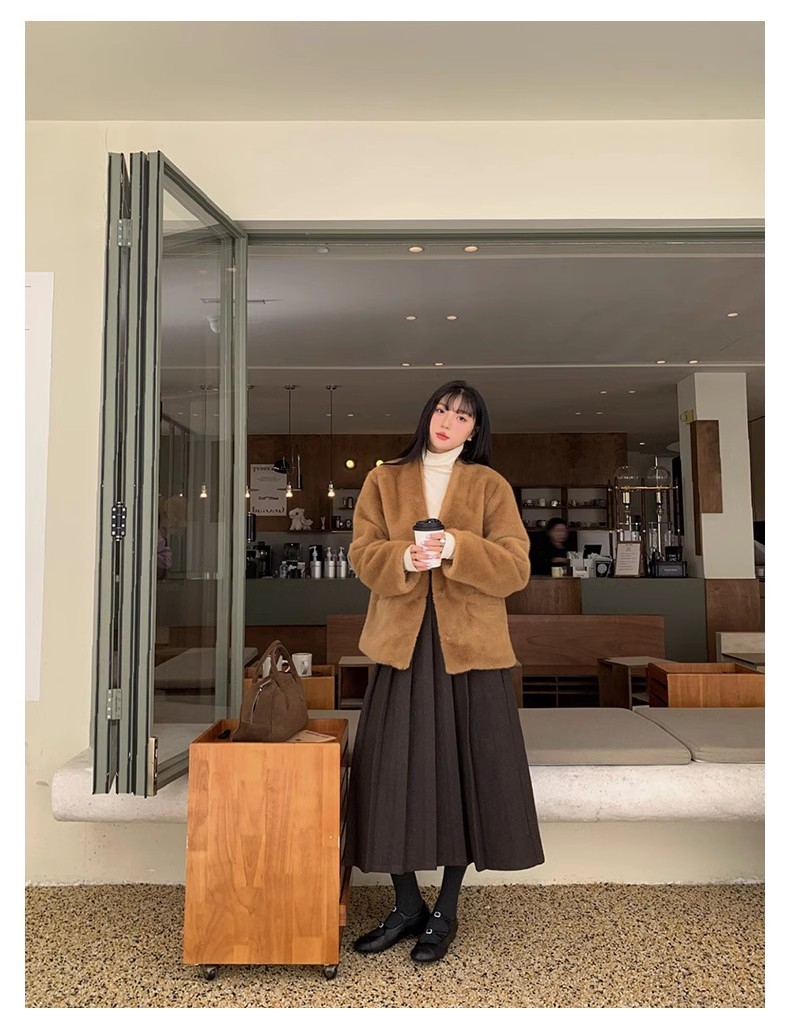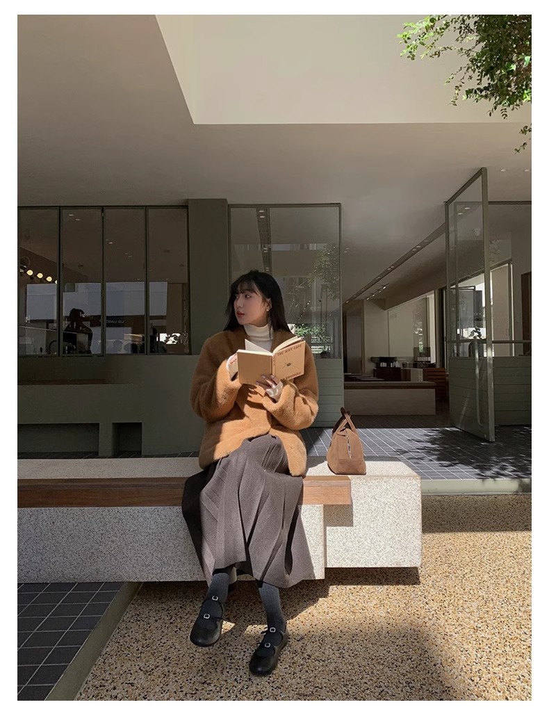 冬季新款毛呢复古半身百褶裙休闲慵懒风中长款显瘦高腰A字裙