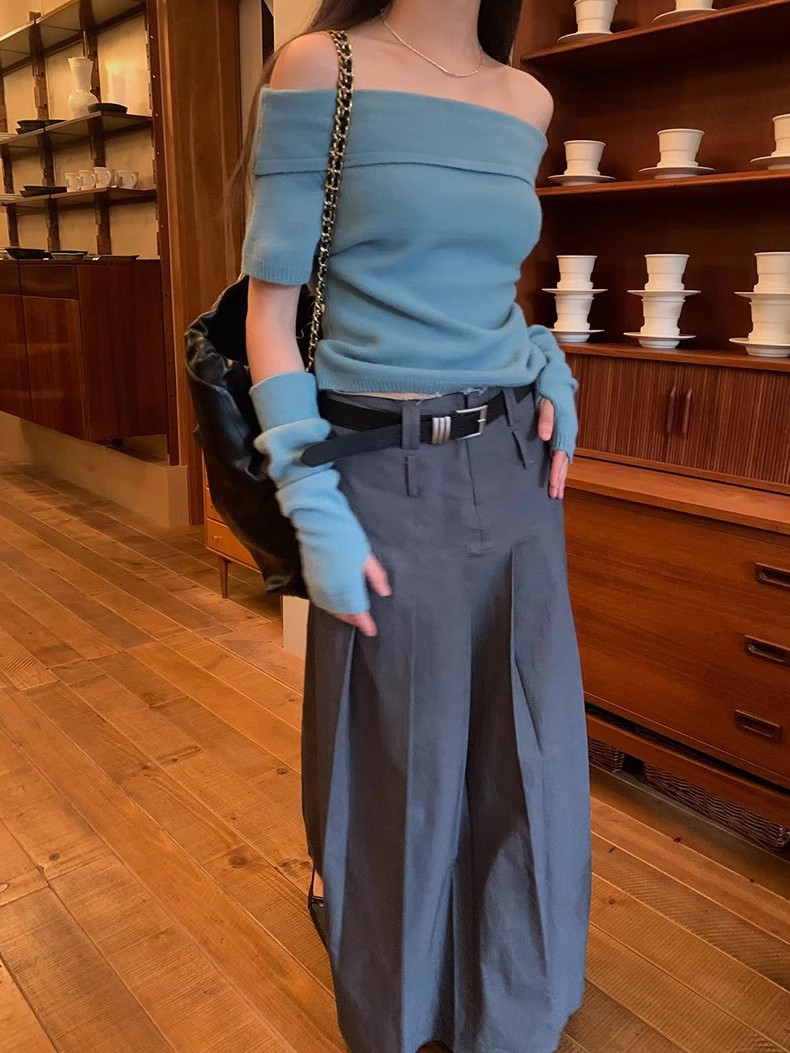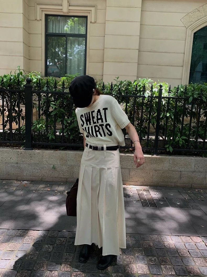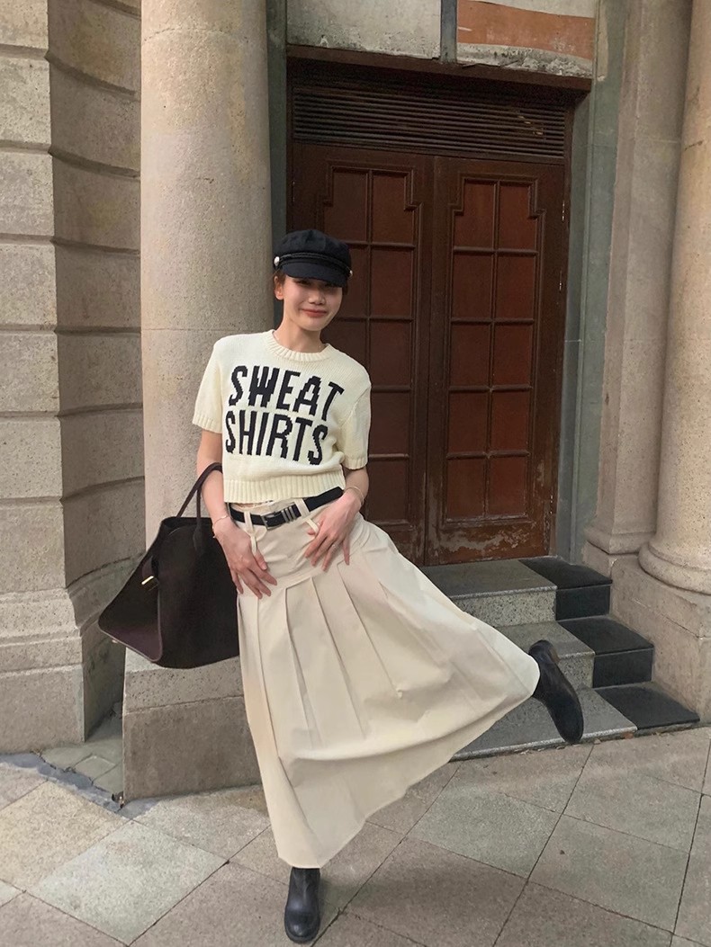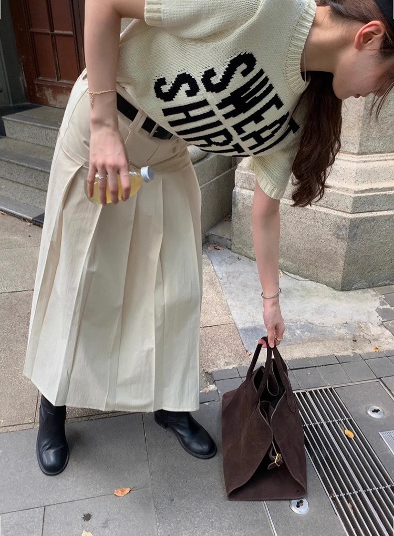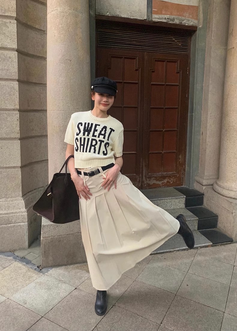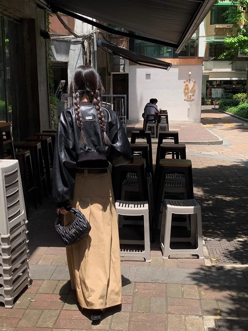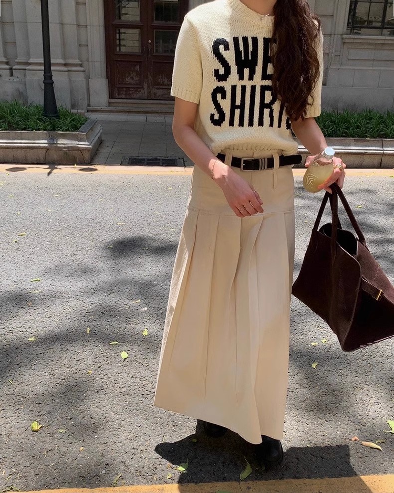 秋季新款韩版休闲通勤款纯色设计感高腰百褶大摆中长款半身裙