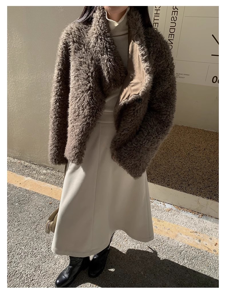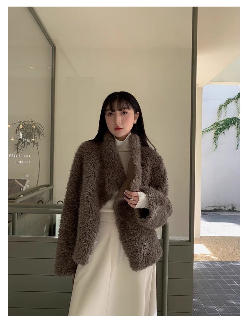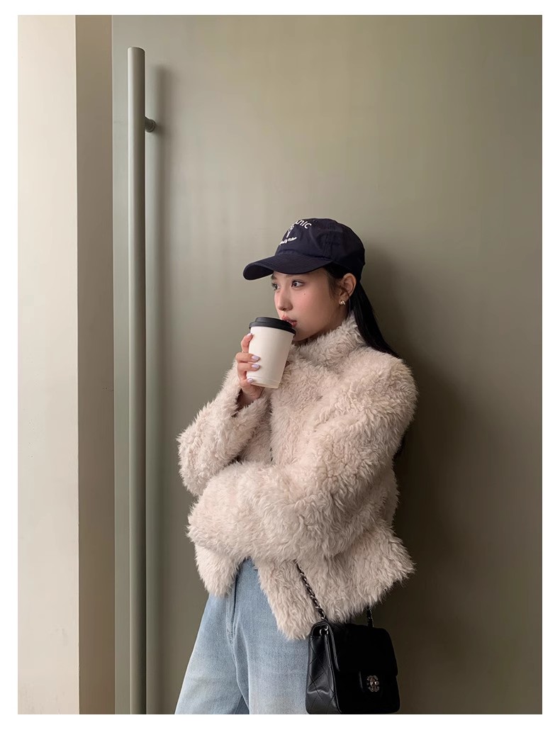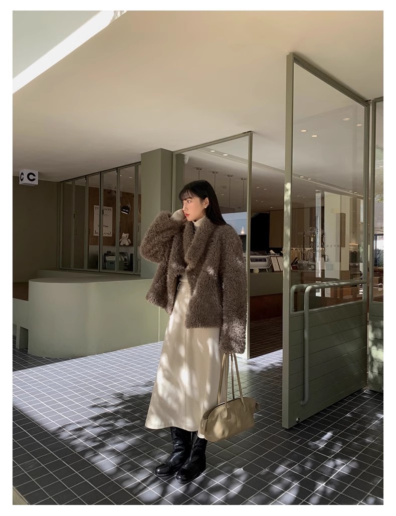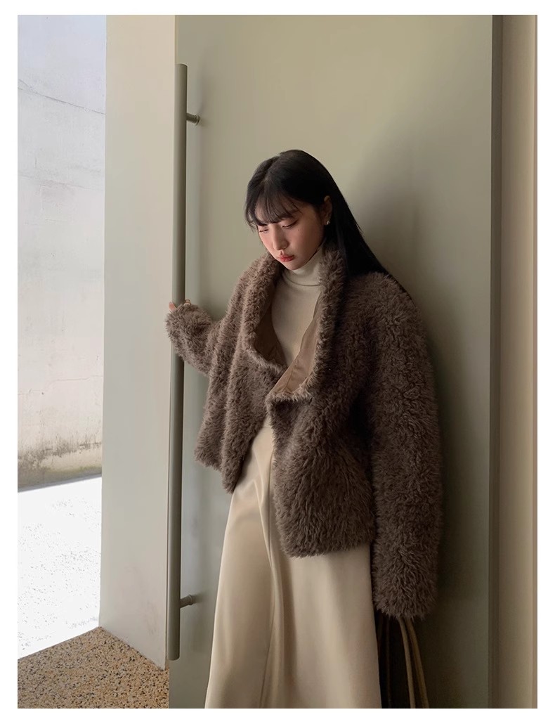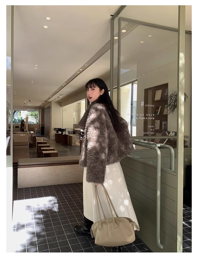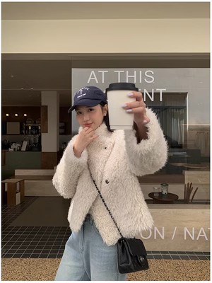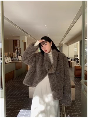 冬季新款气质休闲高级感环保皮草高领皮毛一体毛毛大衣外套