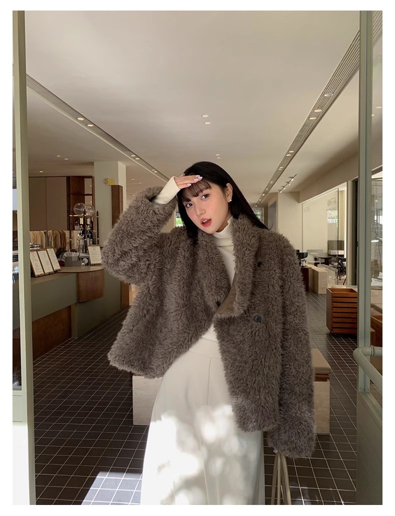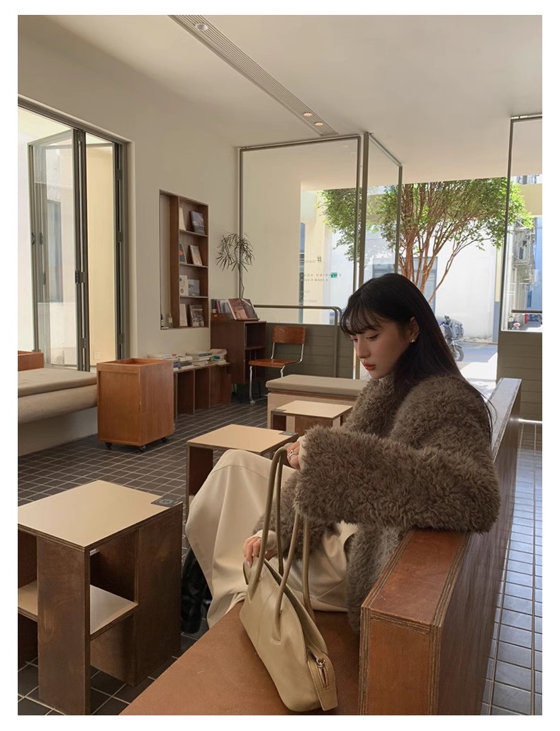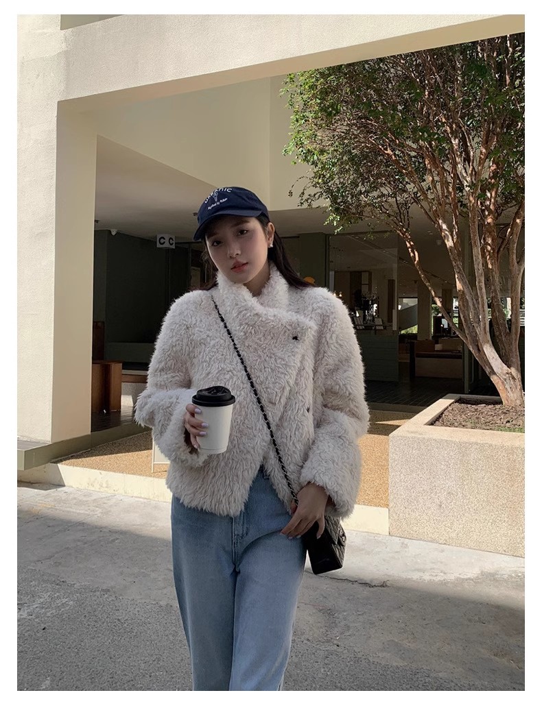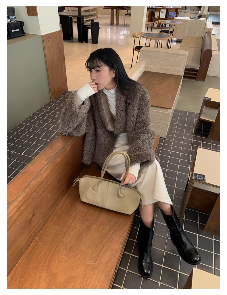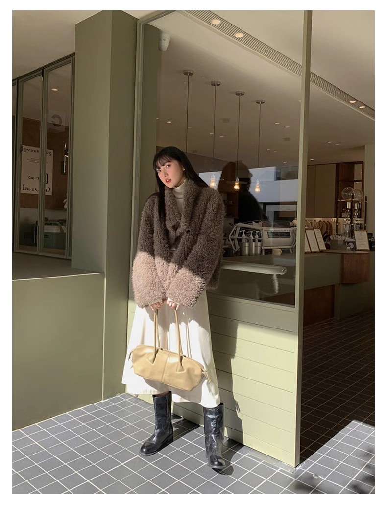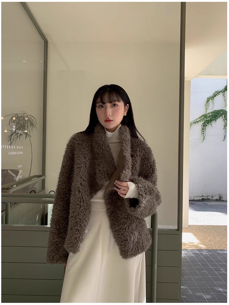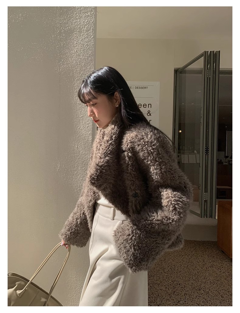 冬季新款气质休闲高级感环保皮草高领皮毛一体毛毛大衣外套