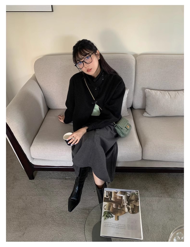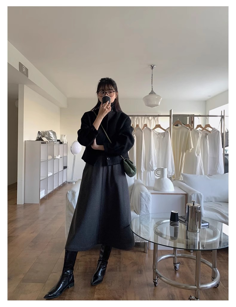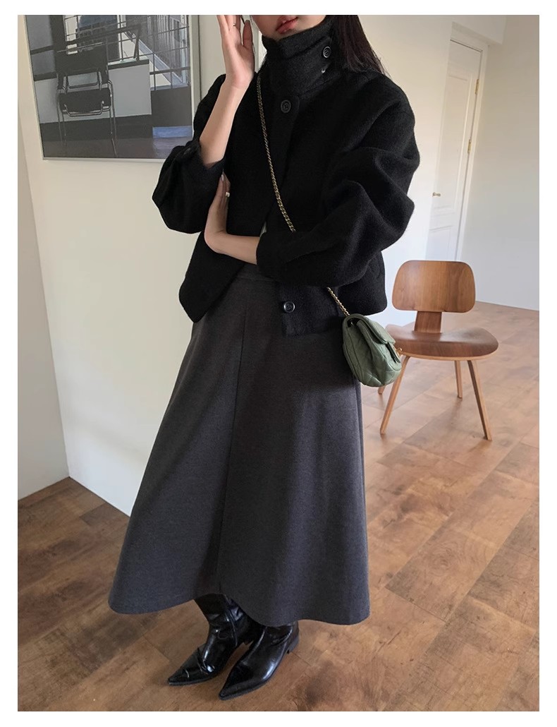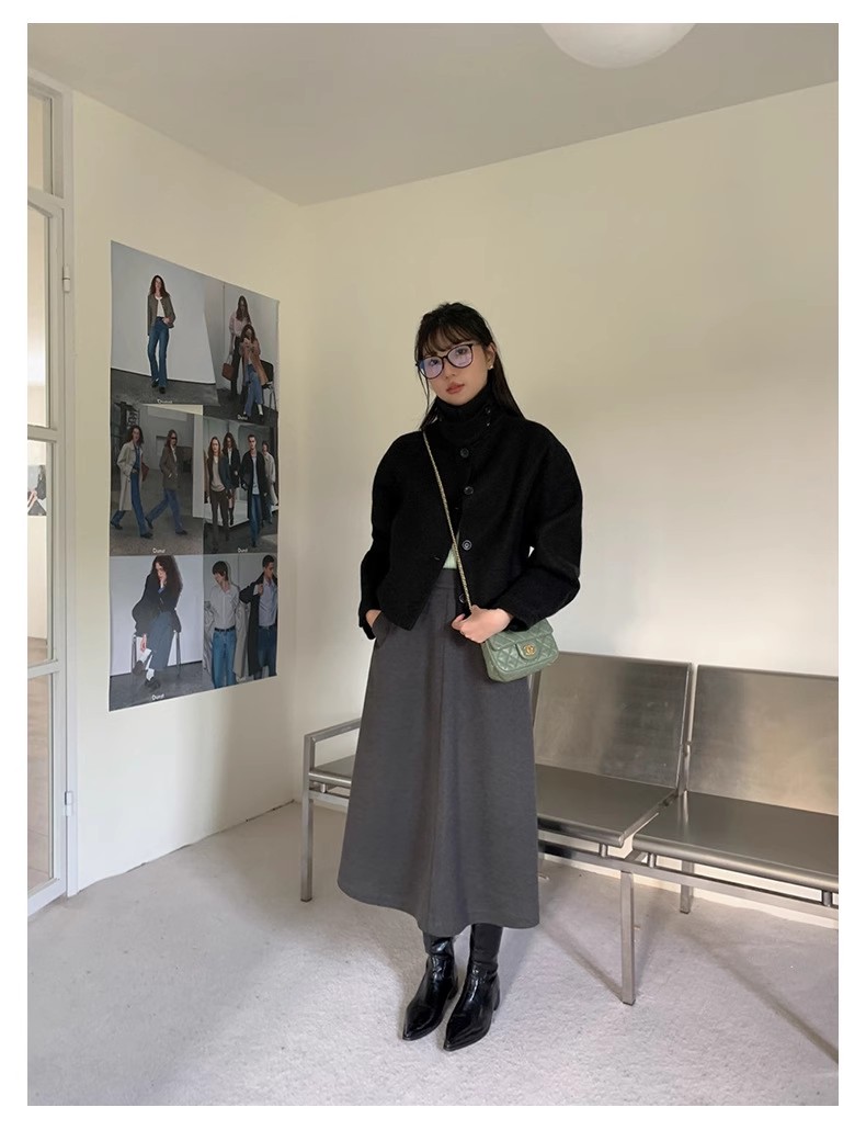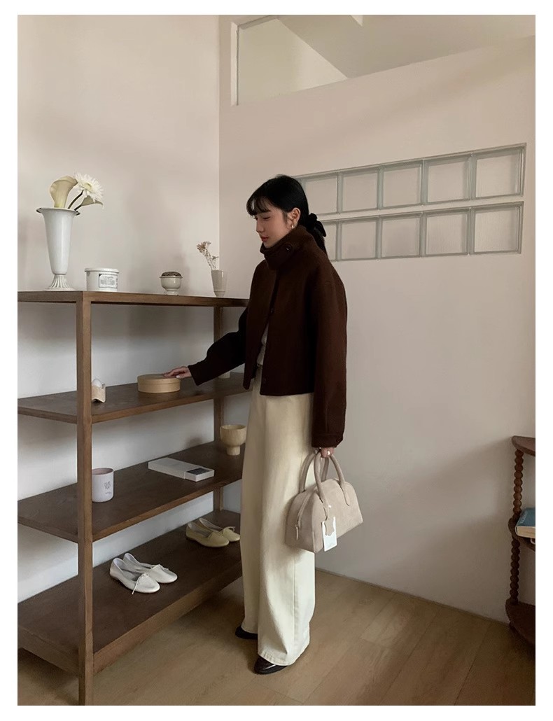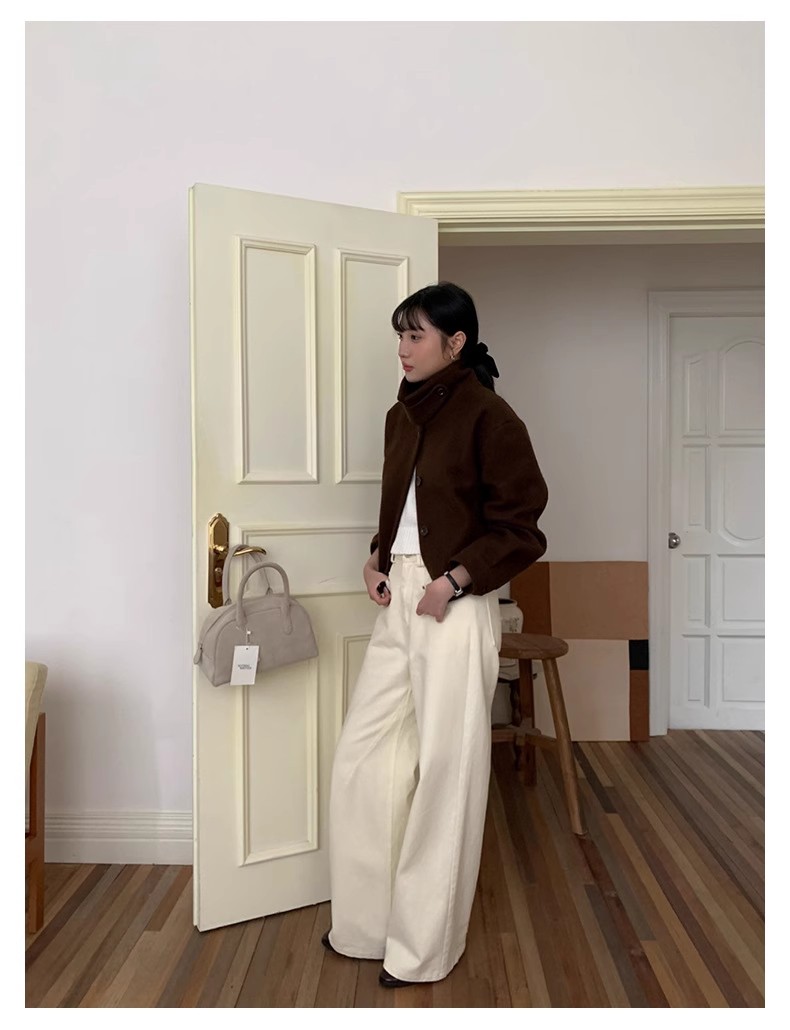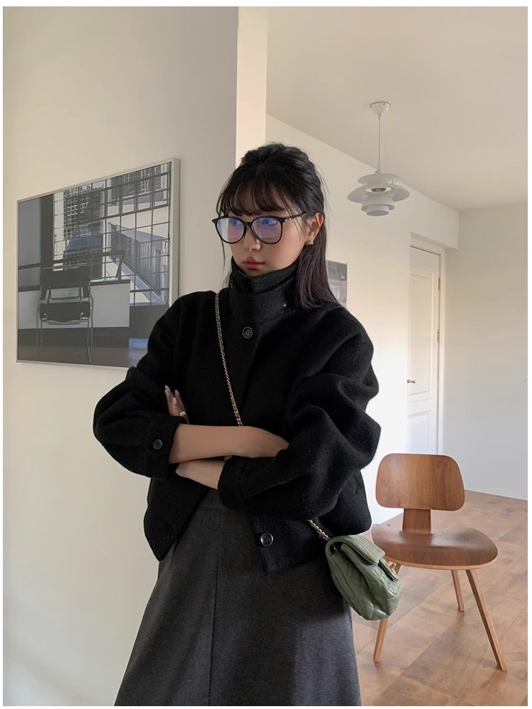 冬季新款系扣立领休闲气质短款大衣美拉德复古挺阔毛呢外套
