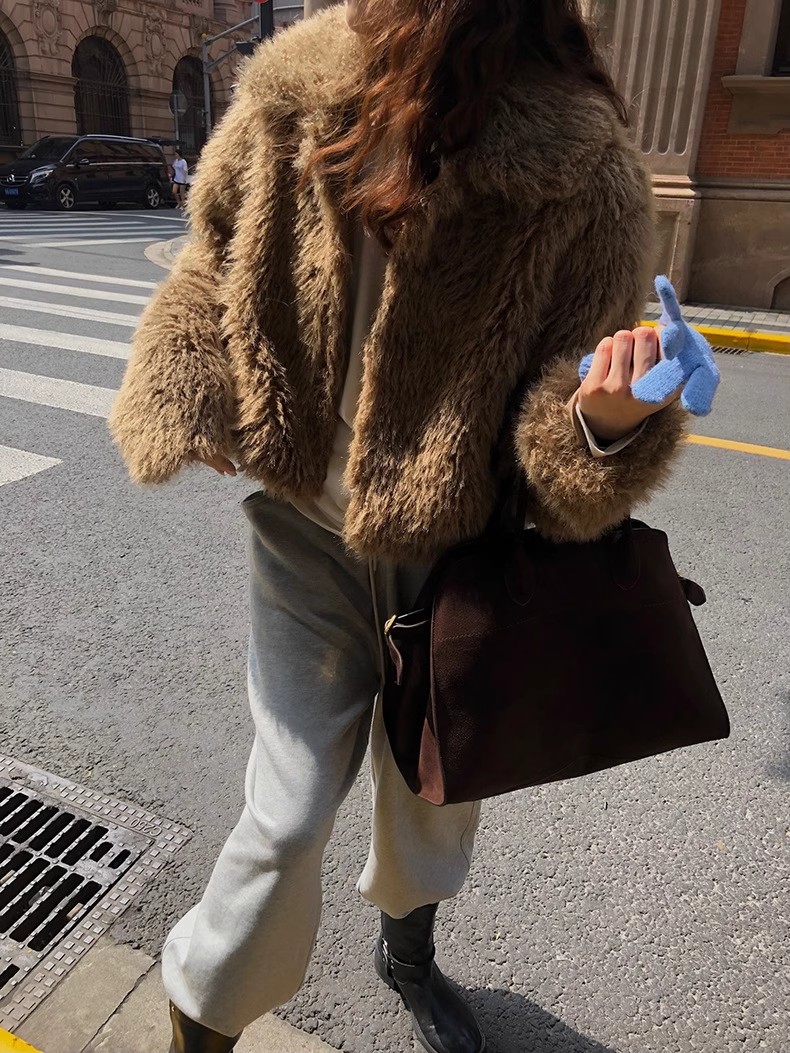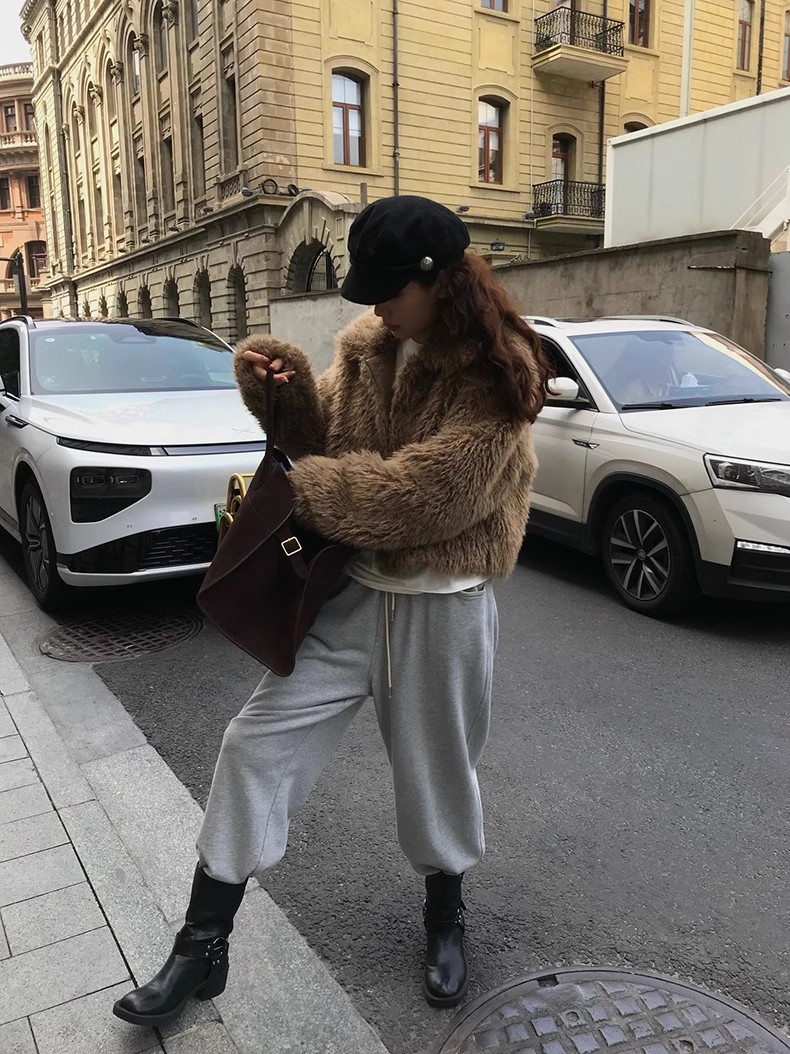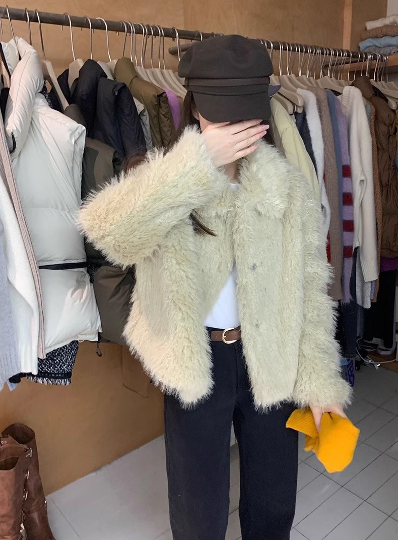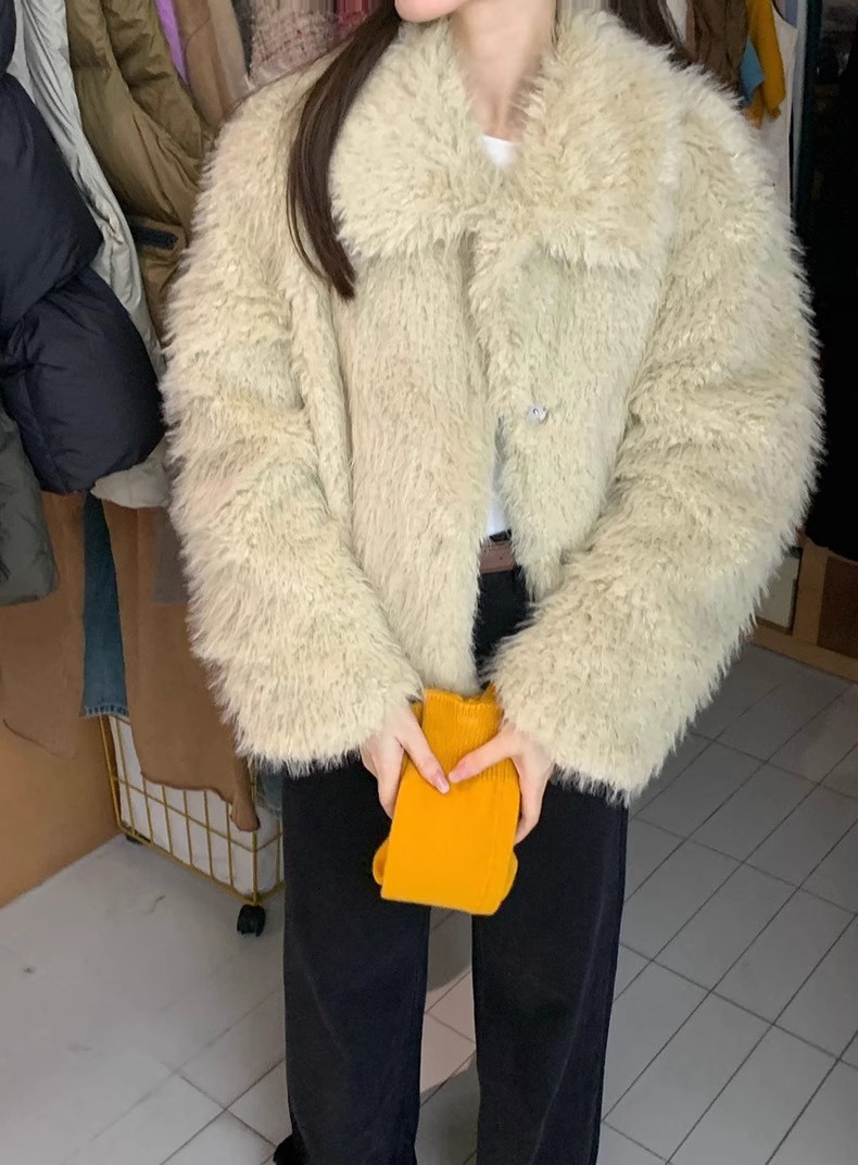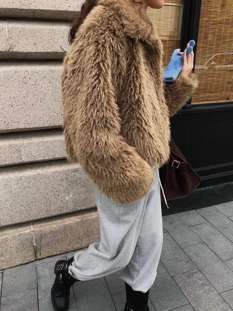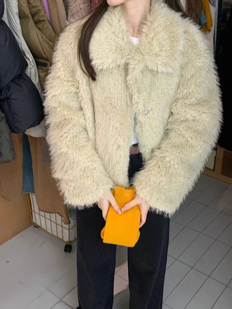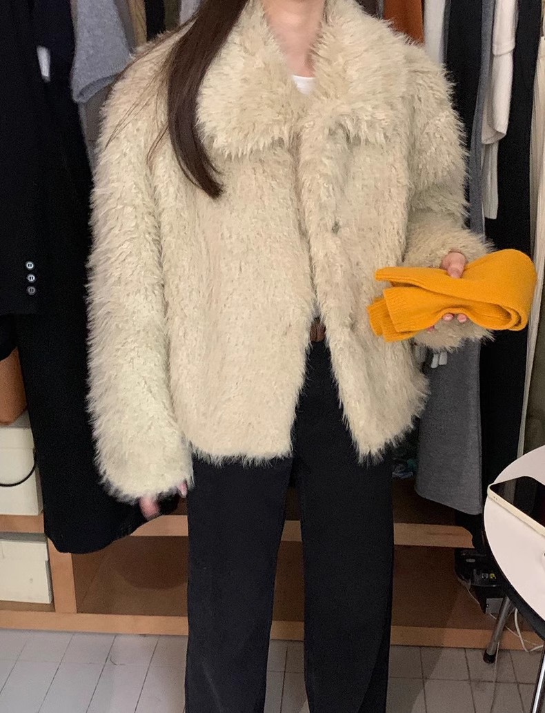 冬季新款韩版复古休闲高级感慵懒翻领加厚保暖皮毛一体短外套