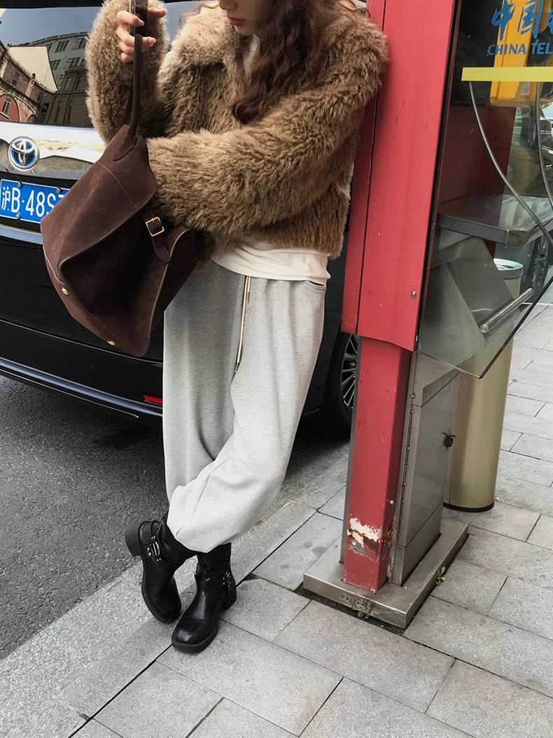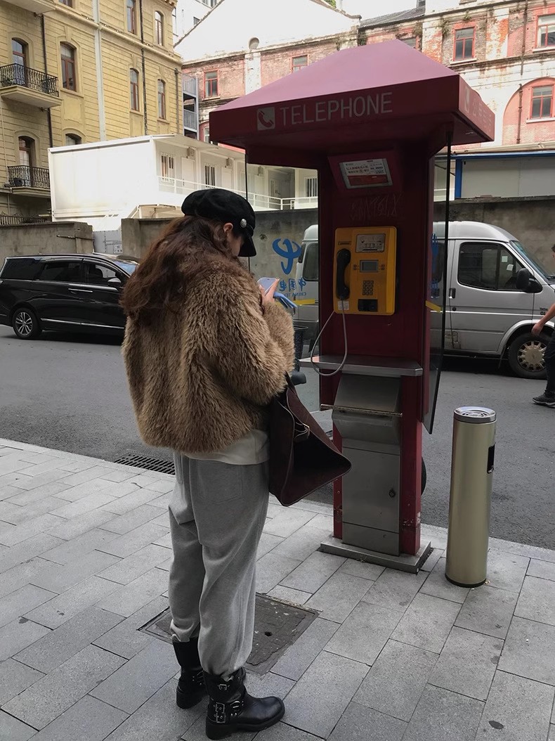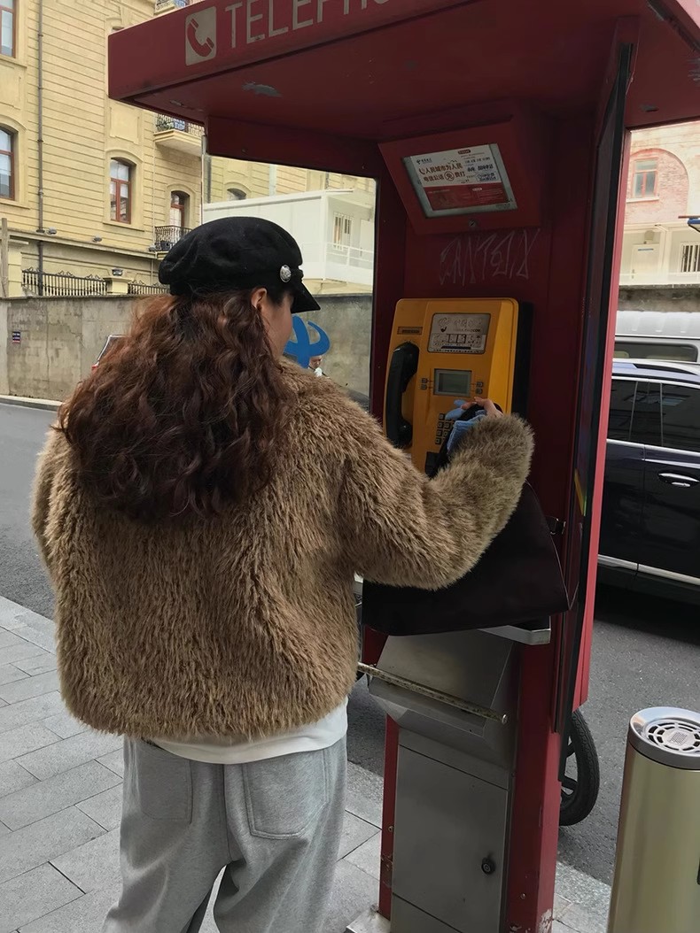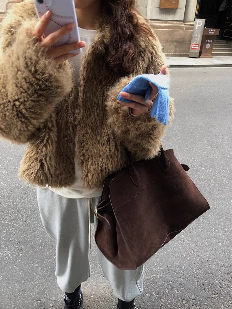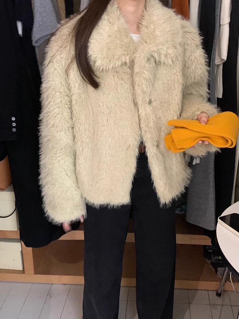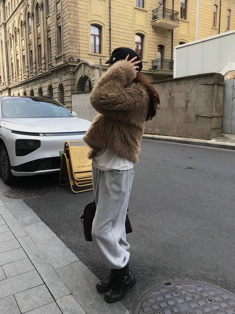 冬季新款韩版复古休闲高级感慵懒翻领加厚保暖皮毛一体短外套