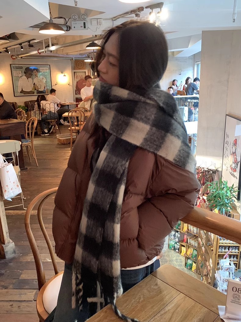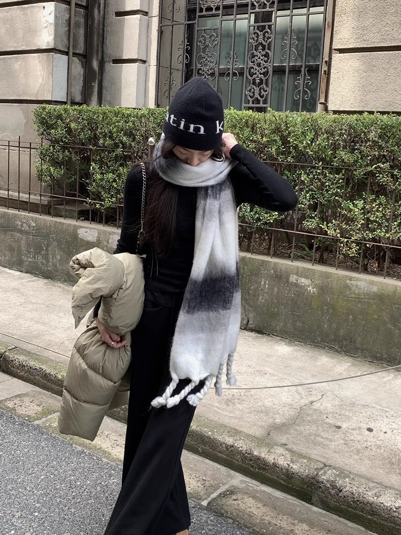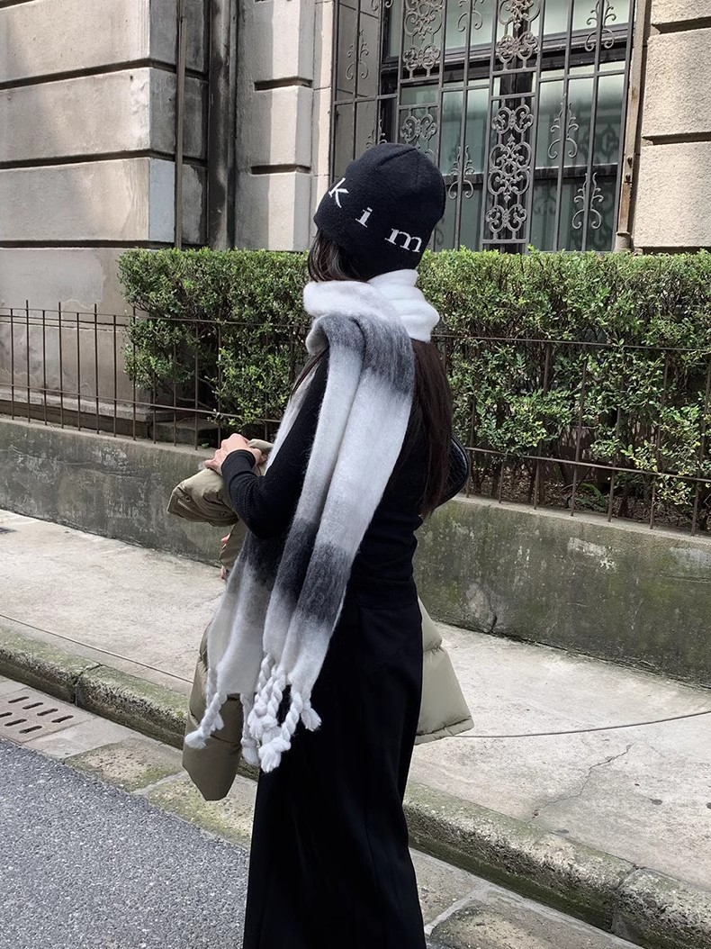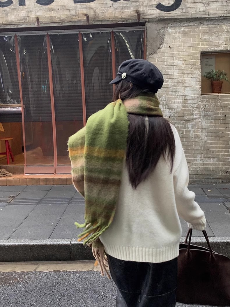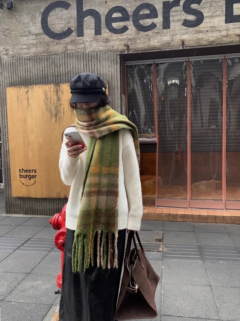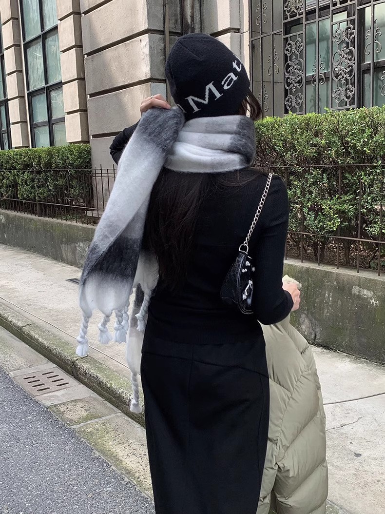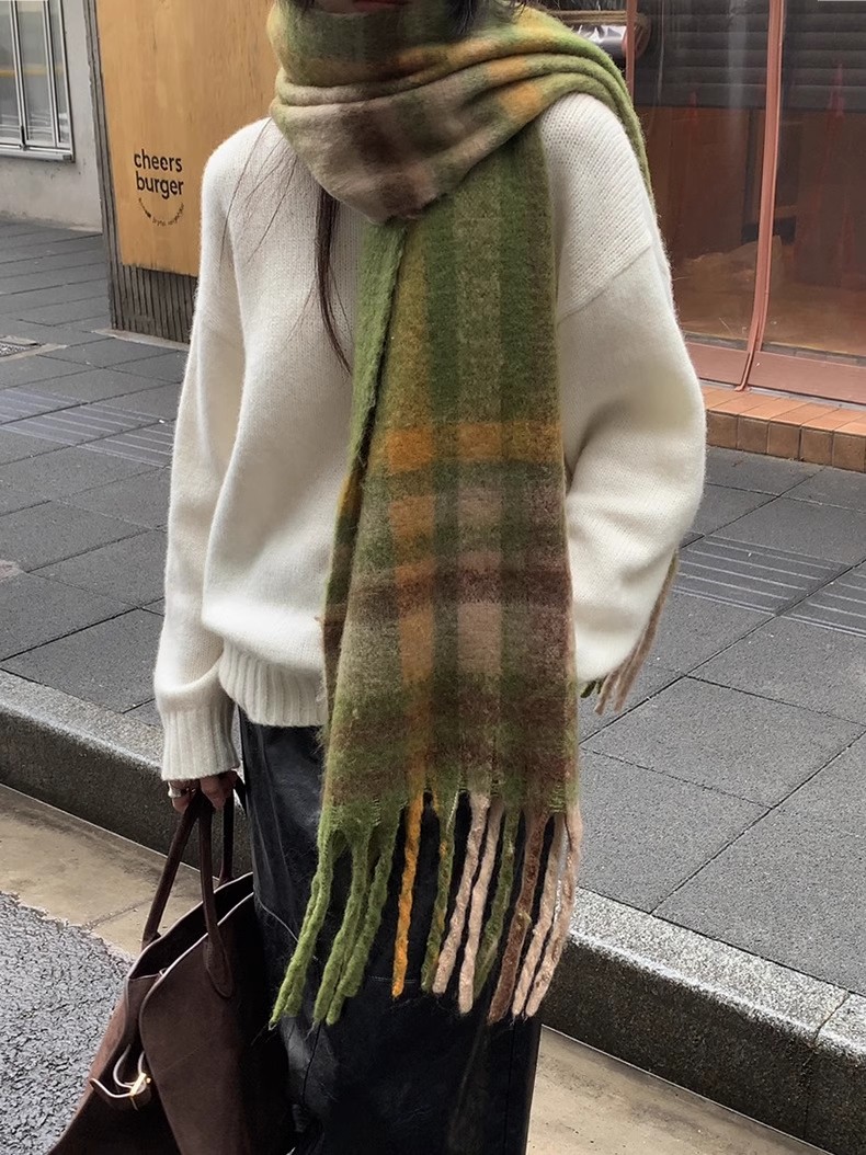 冬季新款韩版休闲慵懒渐变色格子仿羊绒加厚保暖流苏披肩围巾