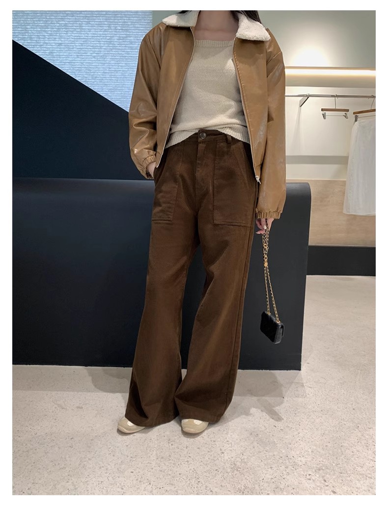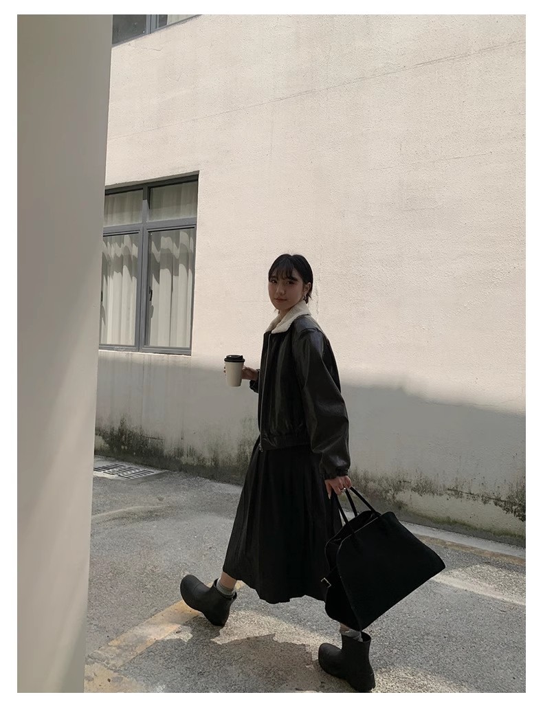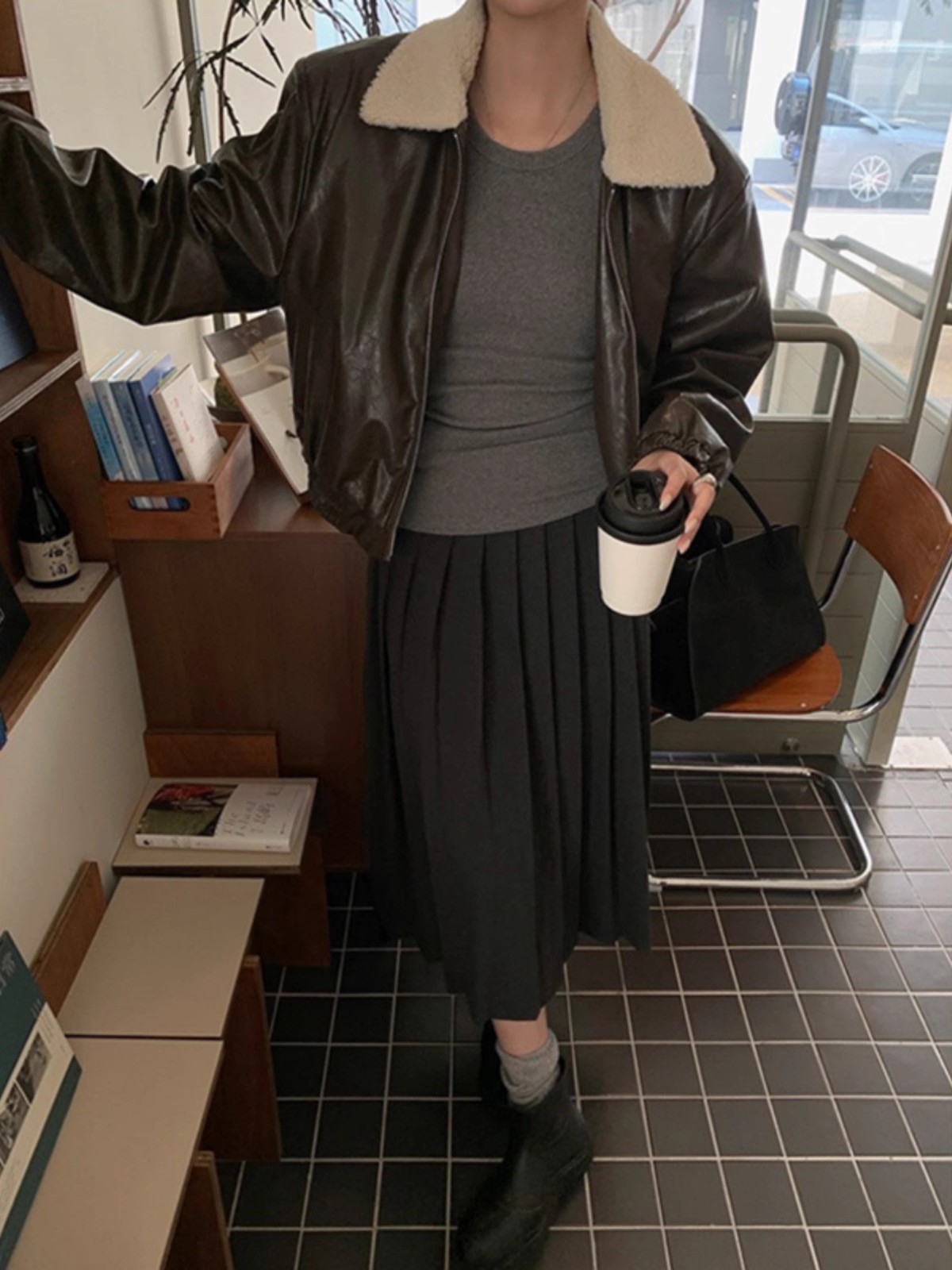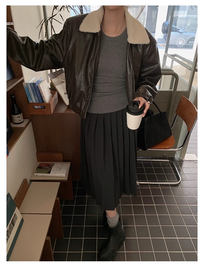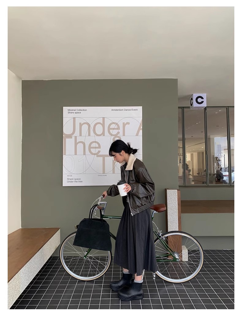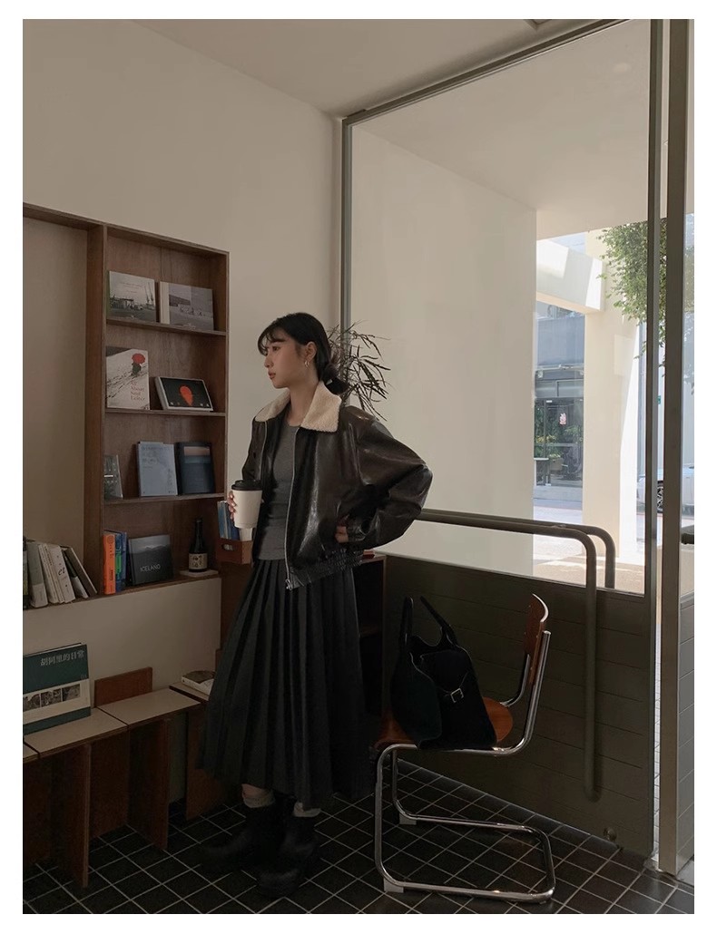 冬季新款美拉德休闲毛领拉链翻领皮夹克复古皮衣加厚短款外套