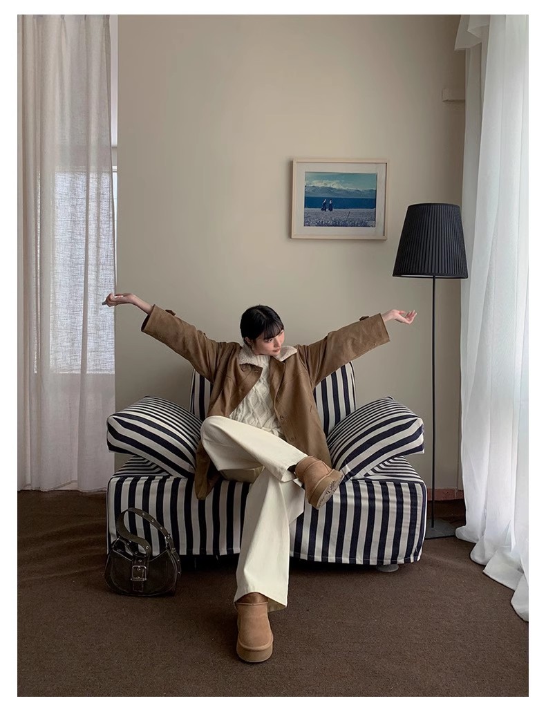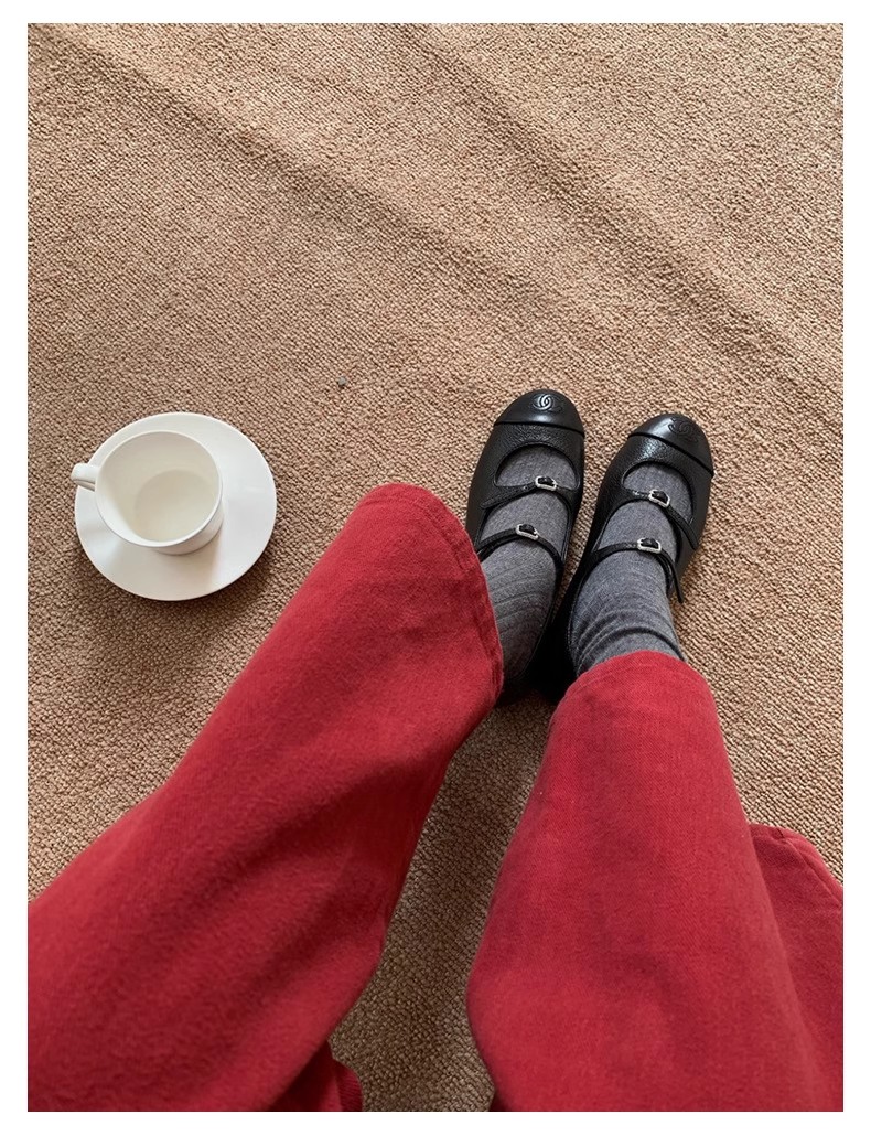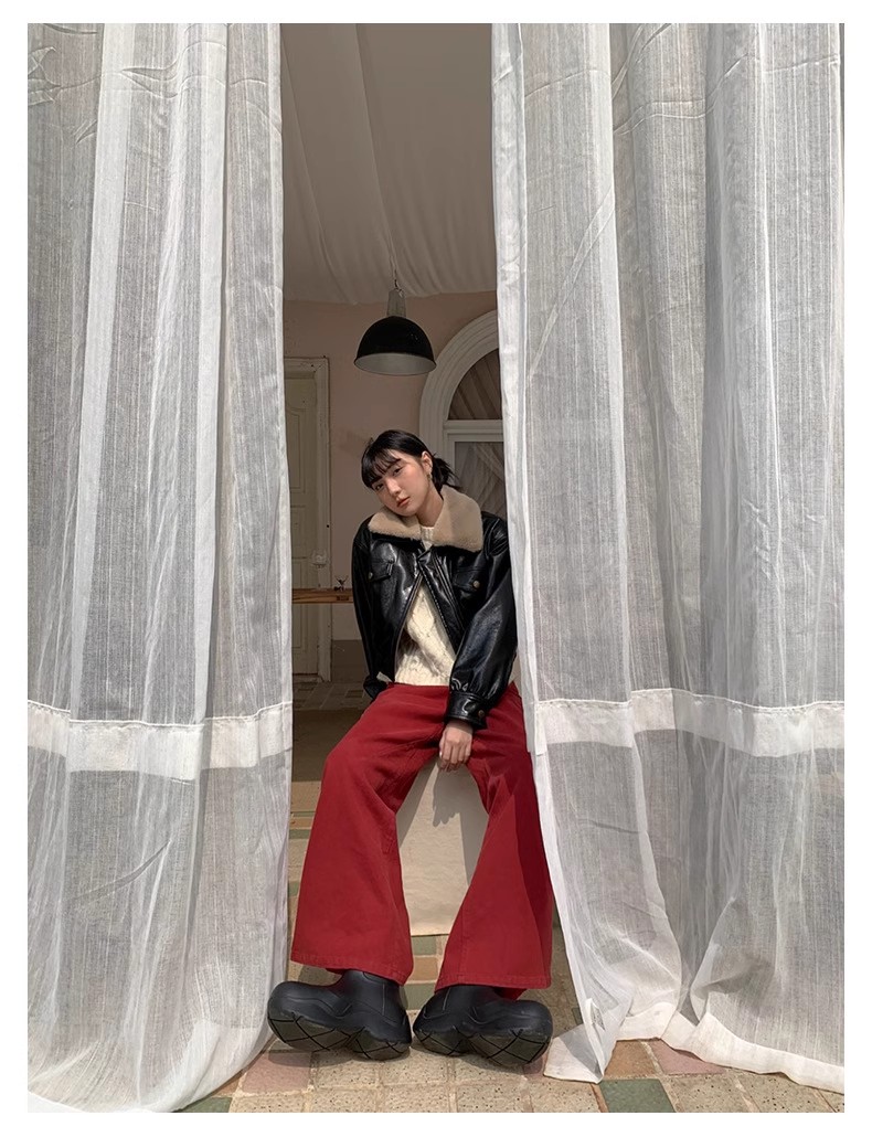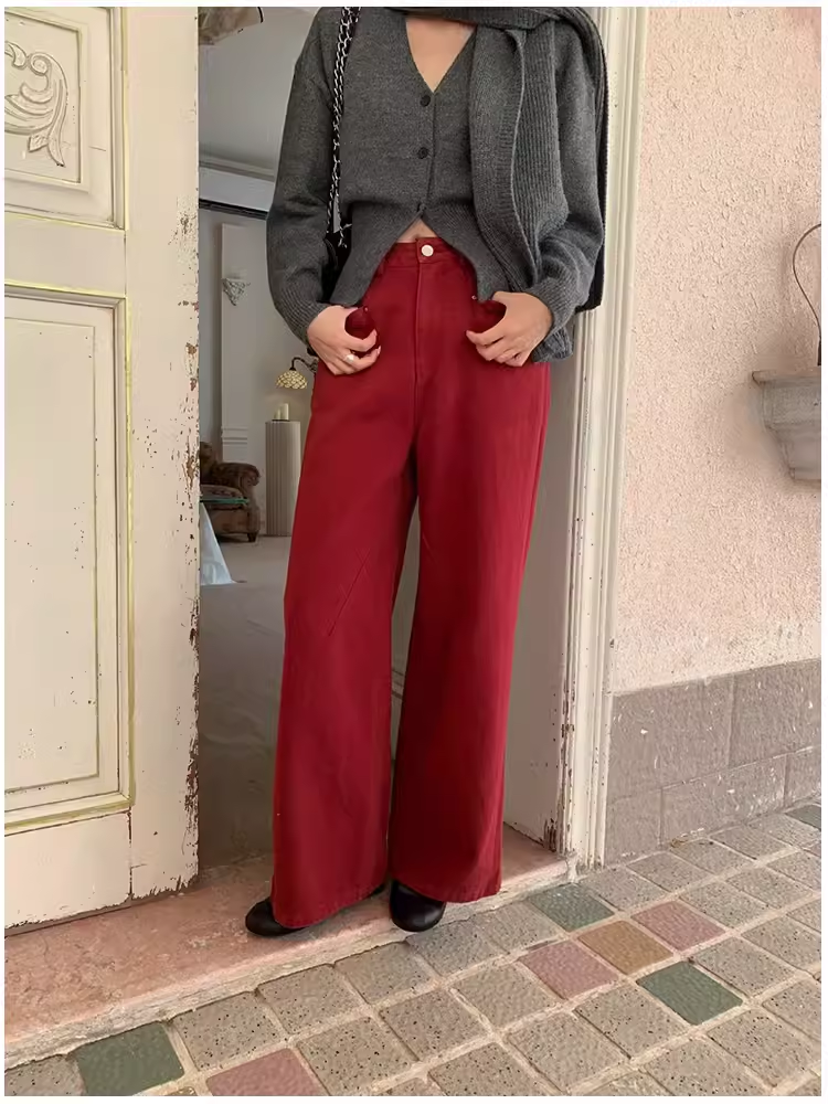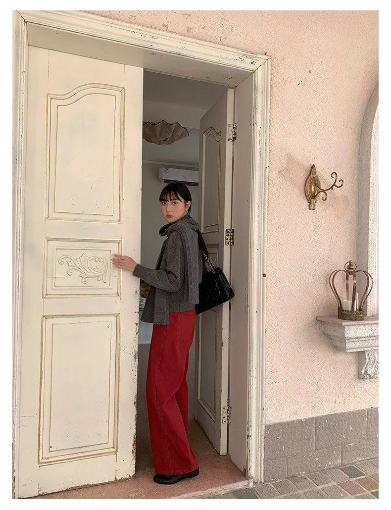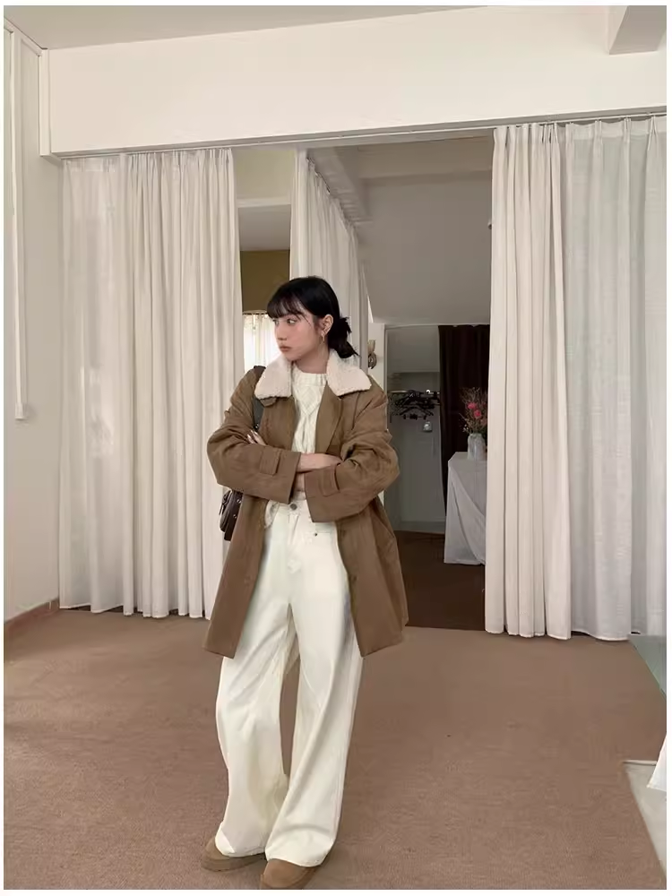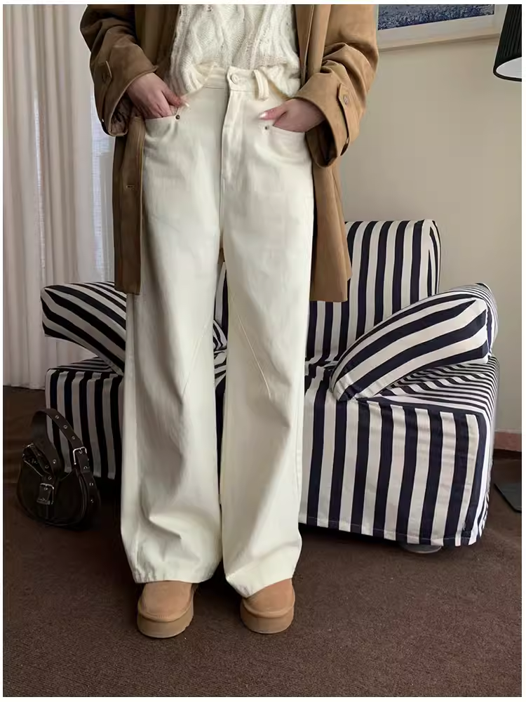 冬季新款复古水洗磨毛纯色休闲裤子显瘦高腰直筒裤百搭长裤