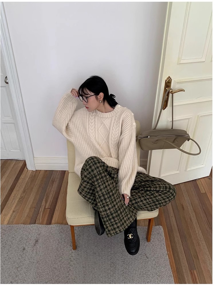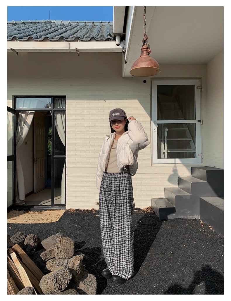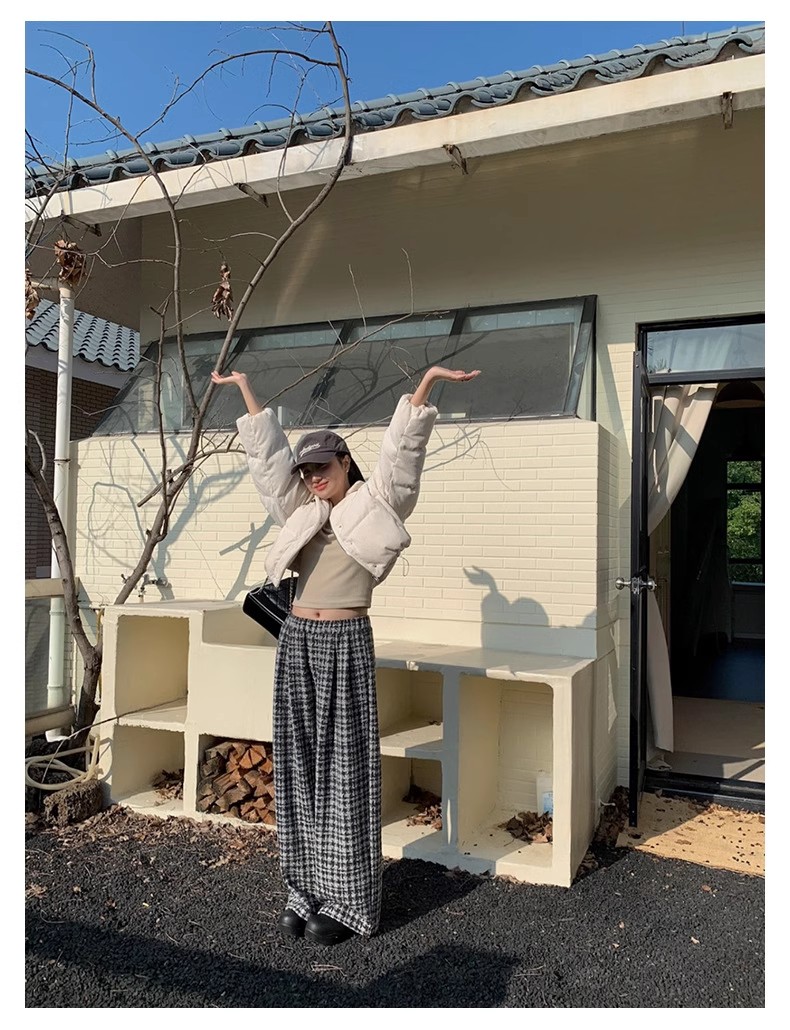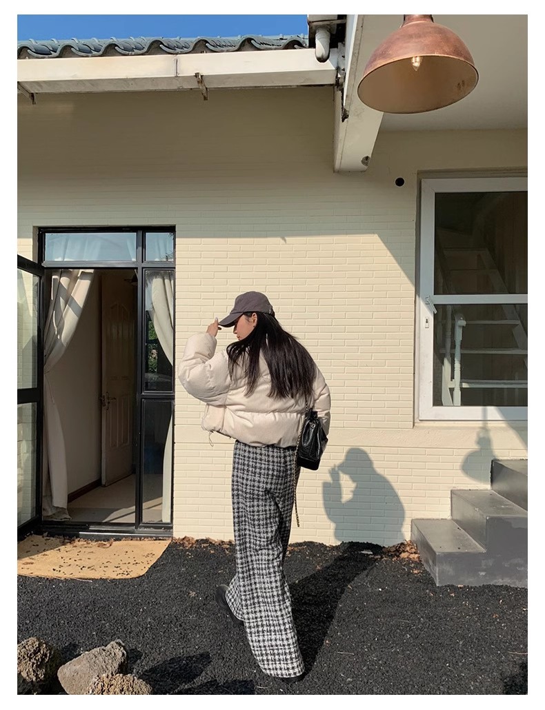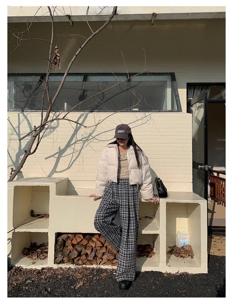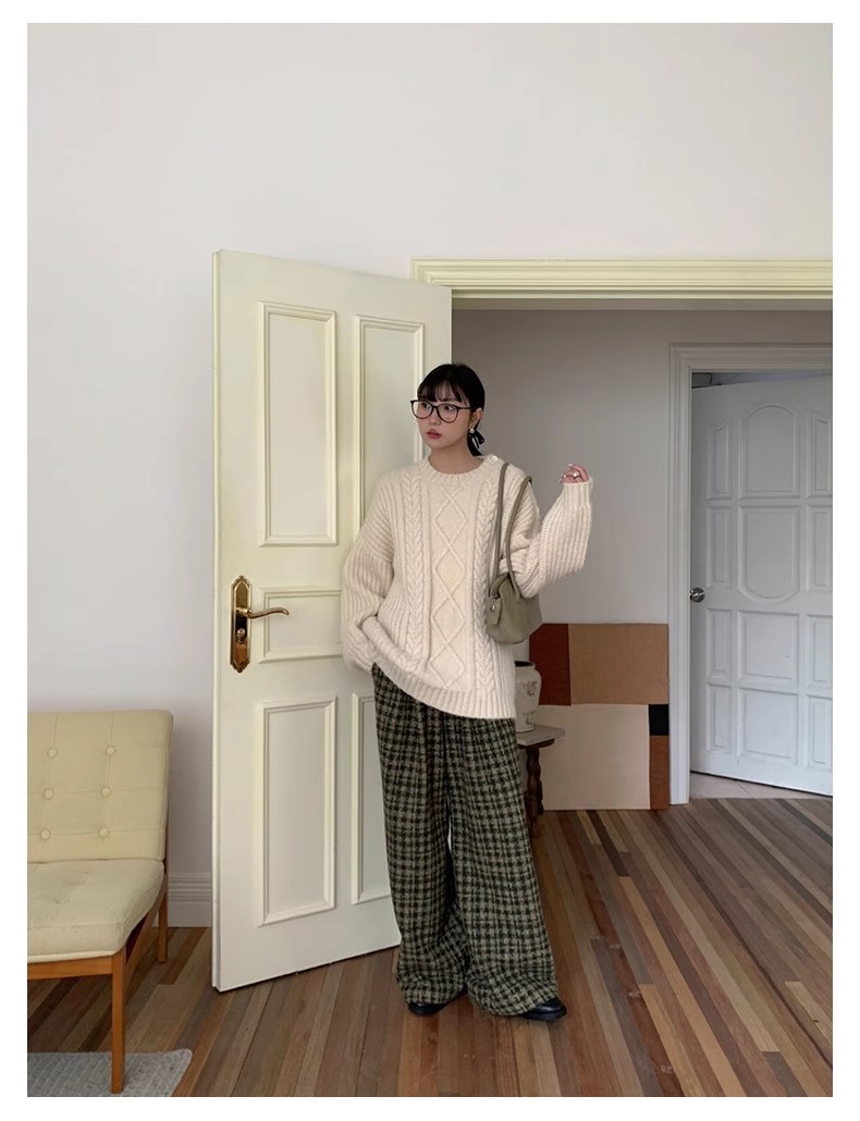 冬季新款复古长款撞色千鸟格高腰阔腿裤百搭休闲垂坠感羊毛裤