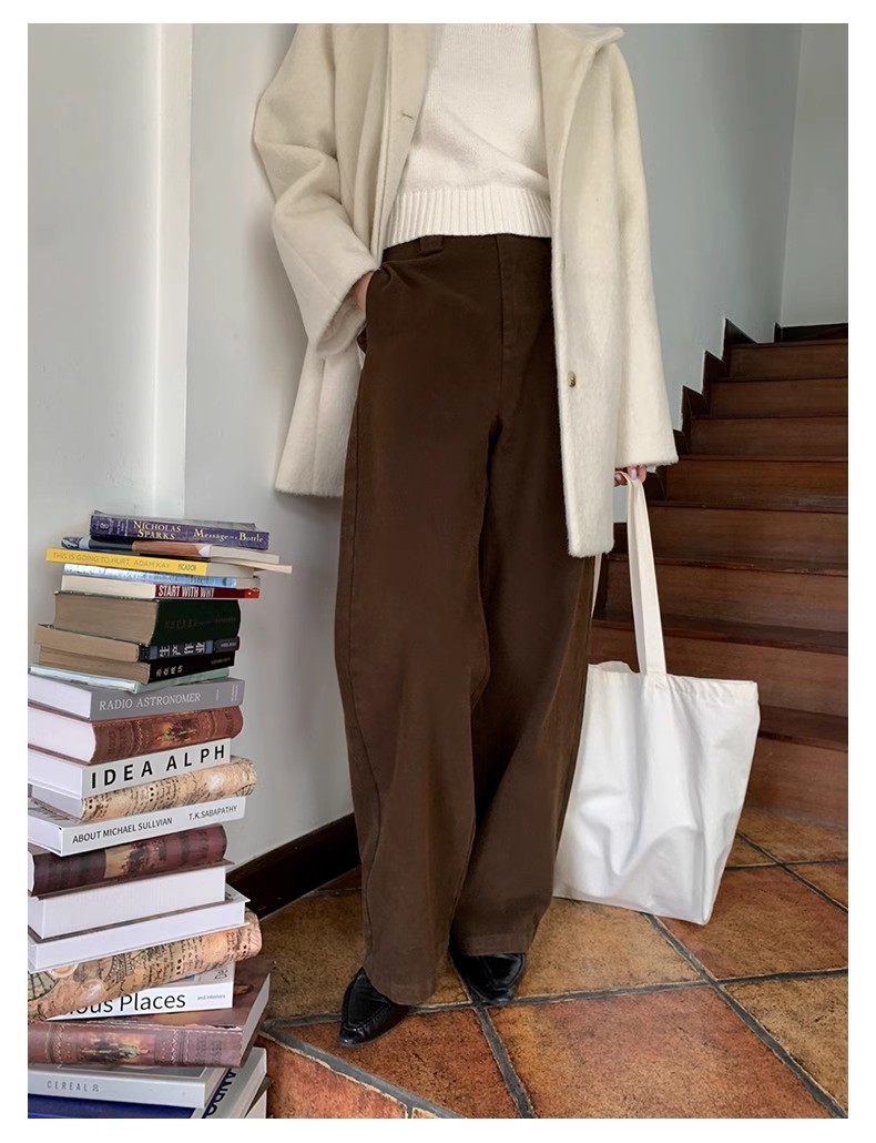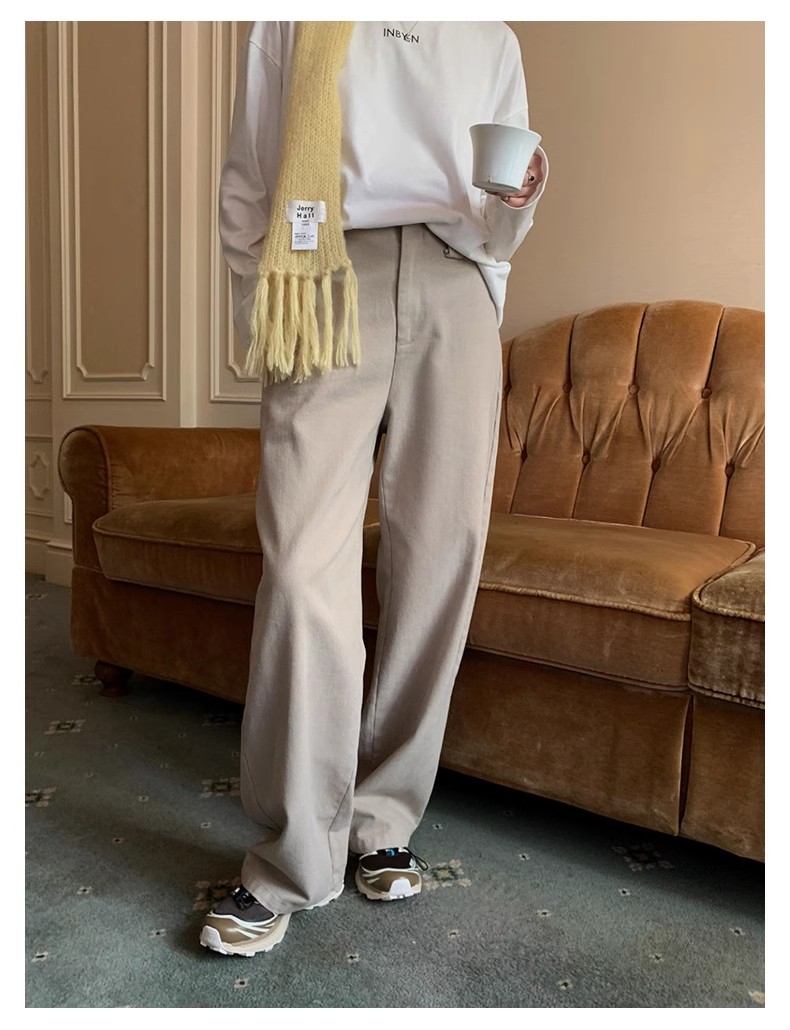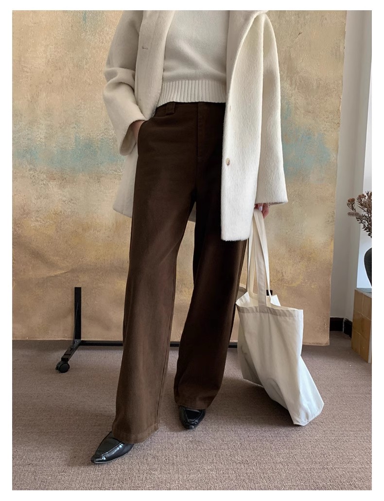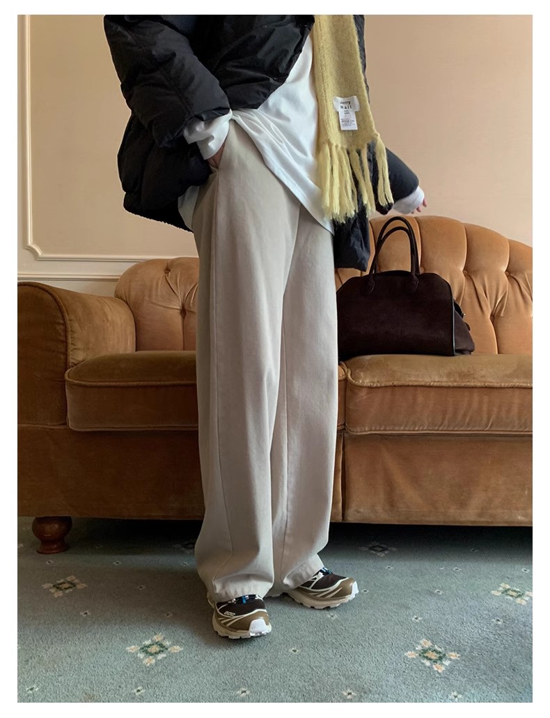 冬季新款梨形身材显瘦休闲通勤纯色长款萝卜裤磨毛高腰休闲裤