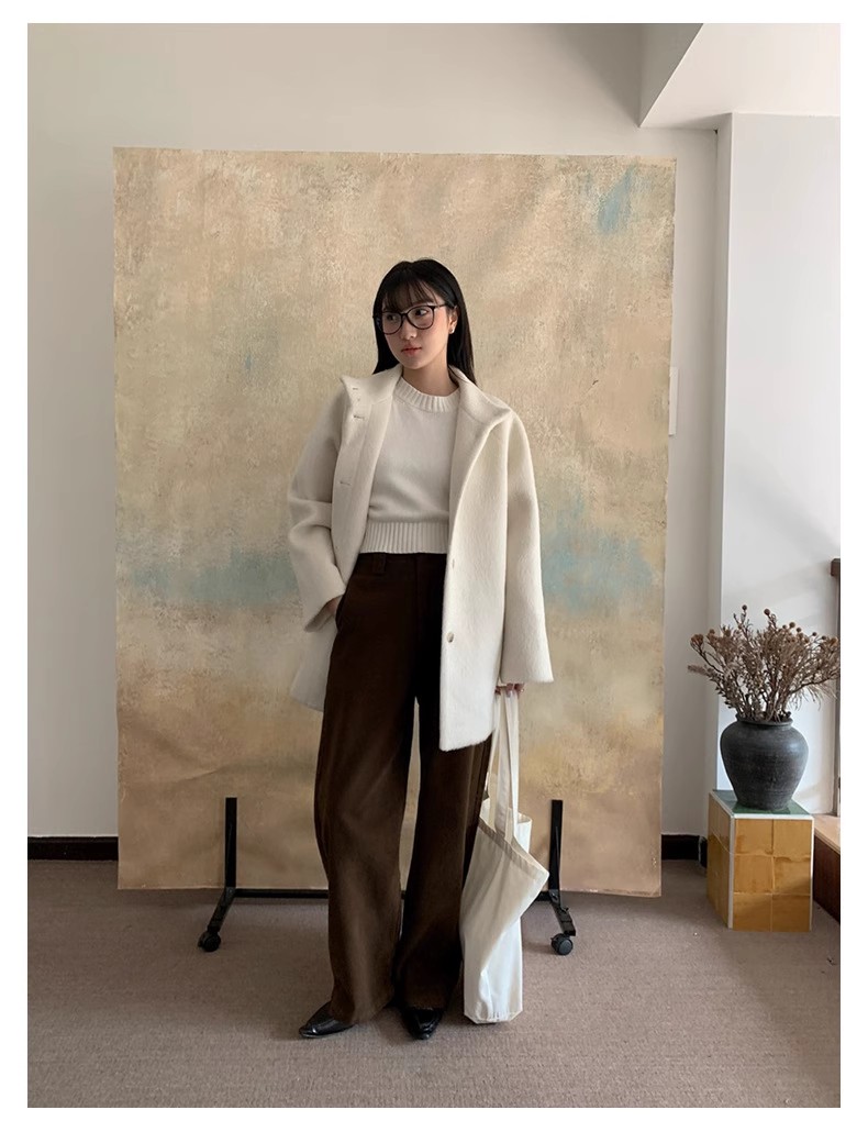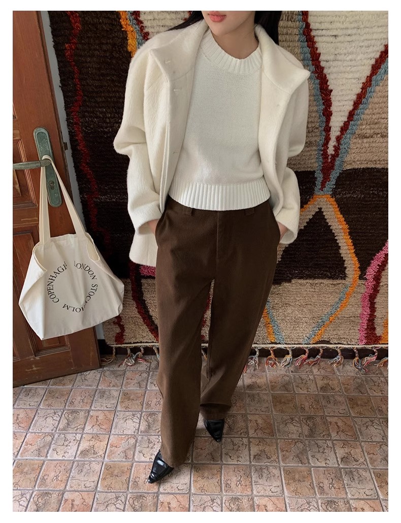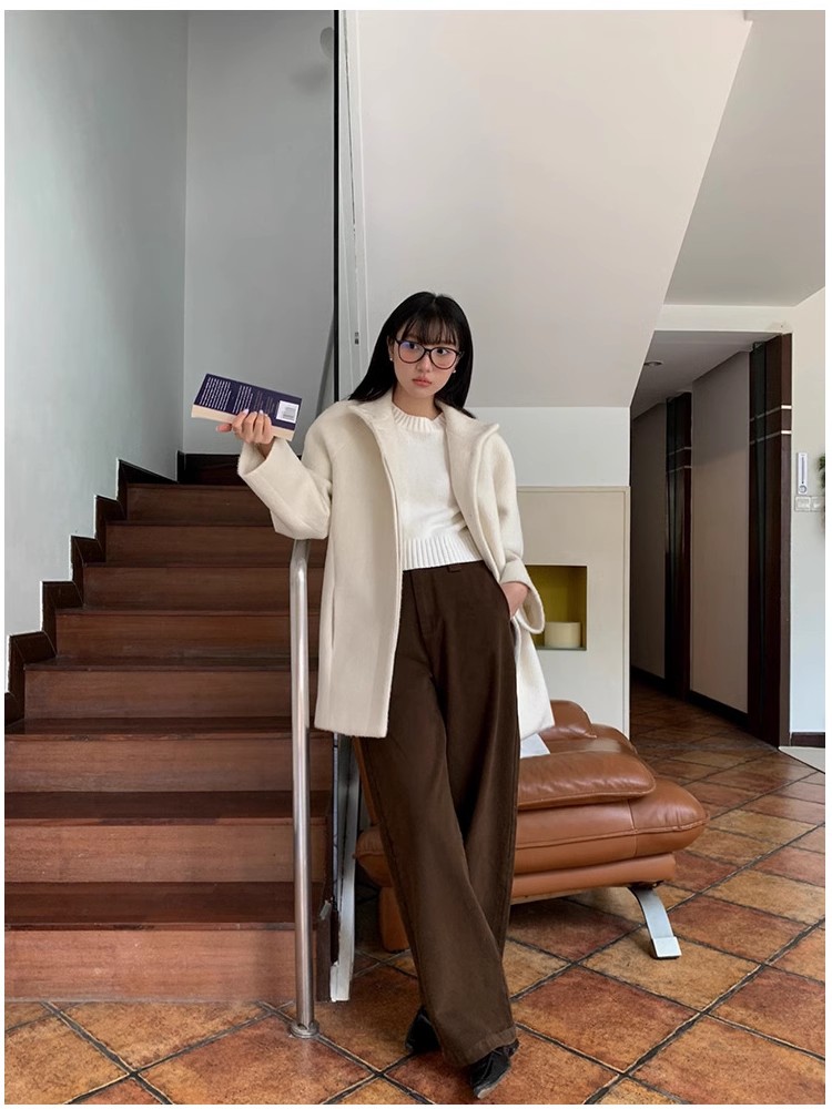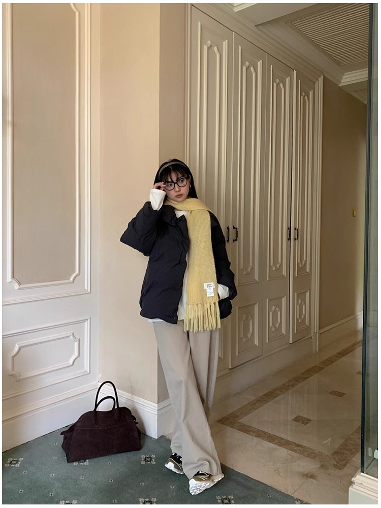冬季新款梨形身材显瘦休闲通勤纯色长款萝卜裤磨毛高腰休闲裤