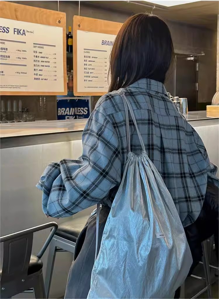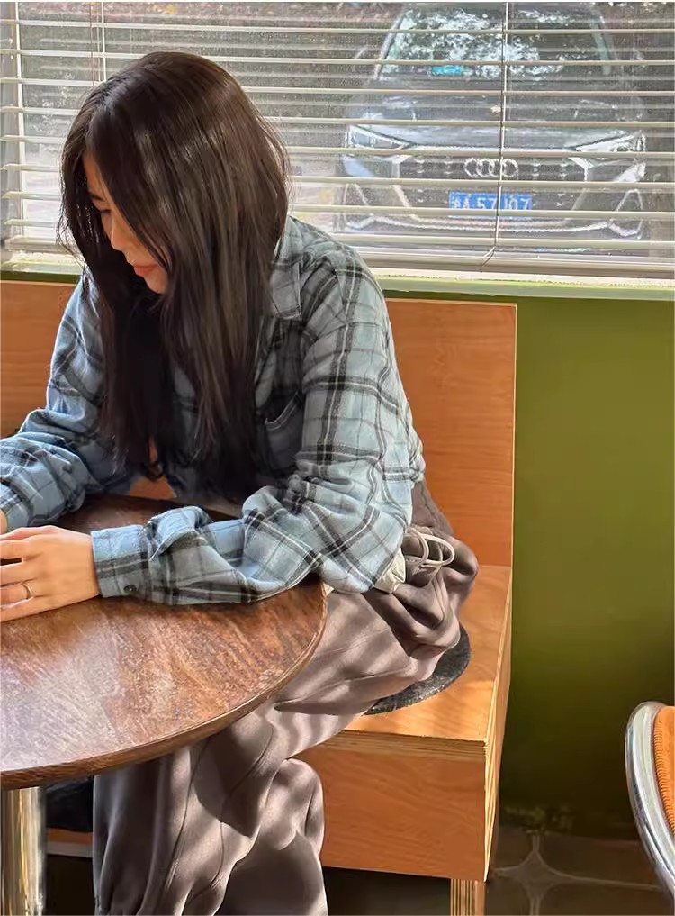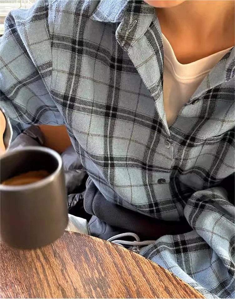 冬季新款经典复古休闲宽松撞色磨毛衬衫贝壳扣翻领休闲上衣