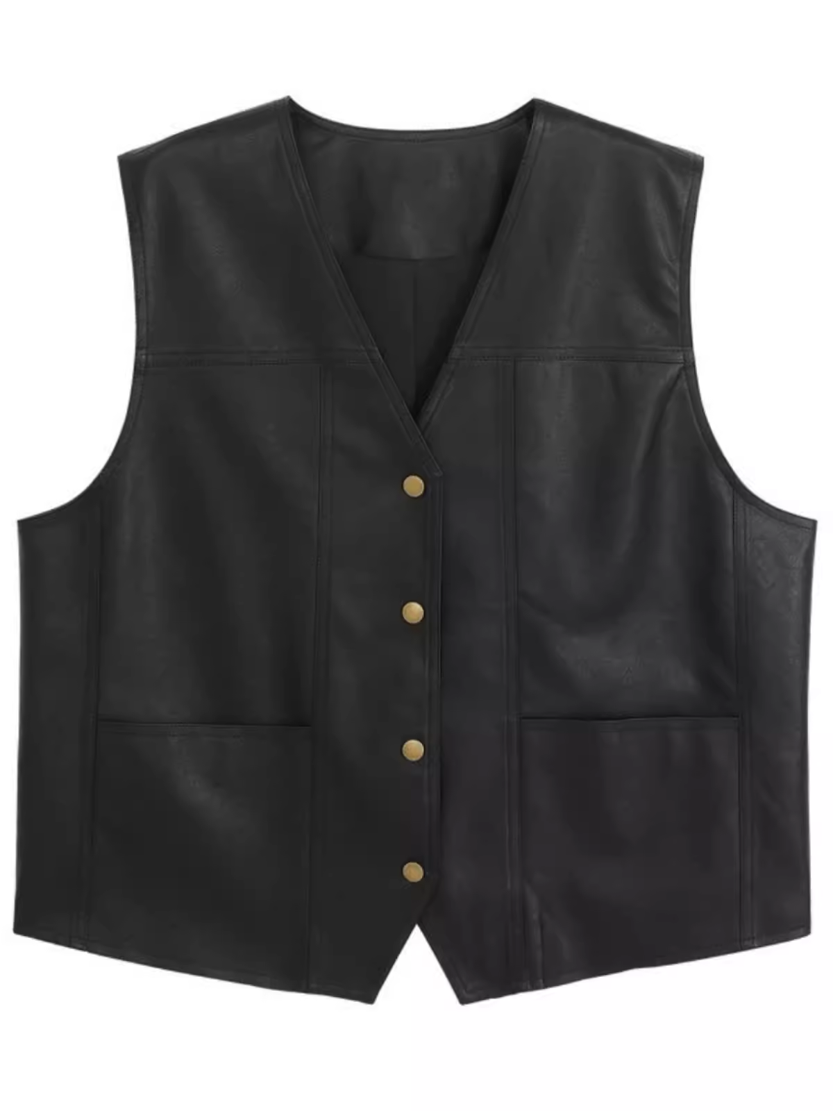 新款无袖黑色背心皮马甲上衣女韩版宽松针织外搭单排扣