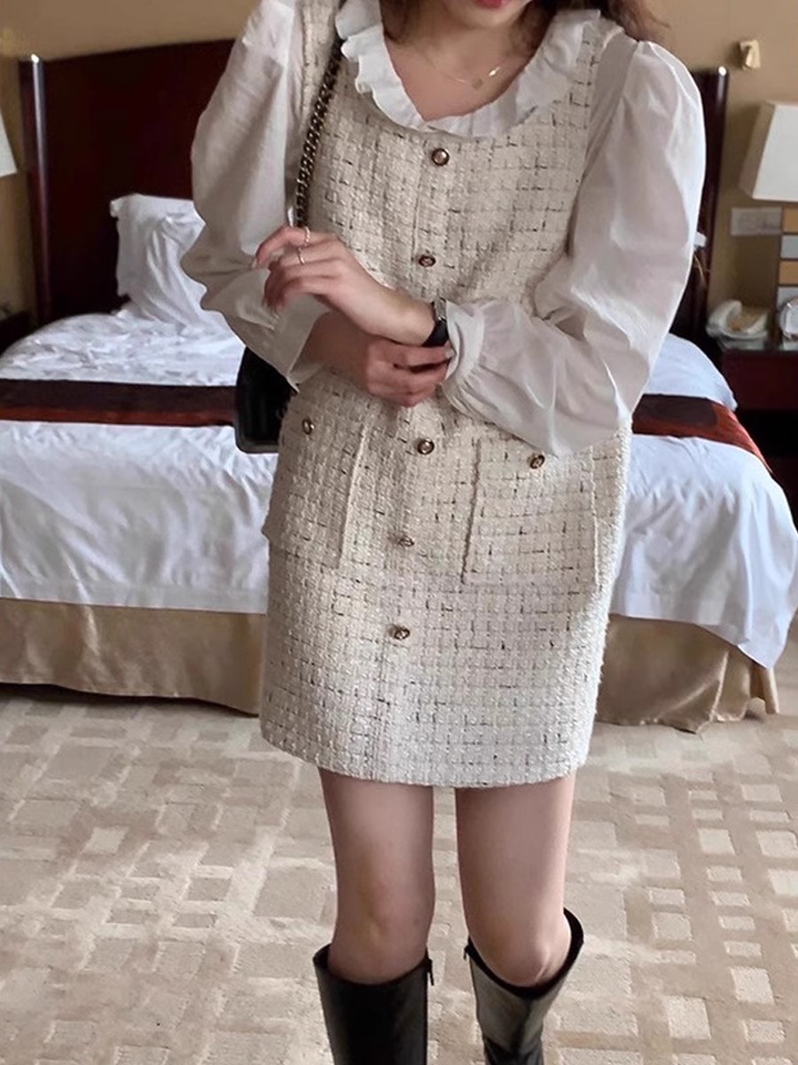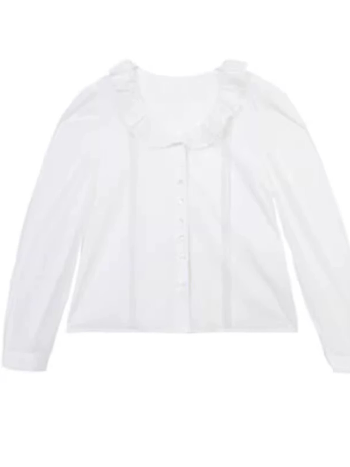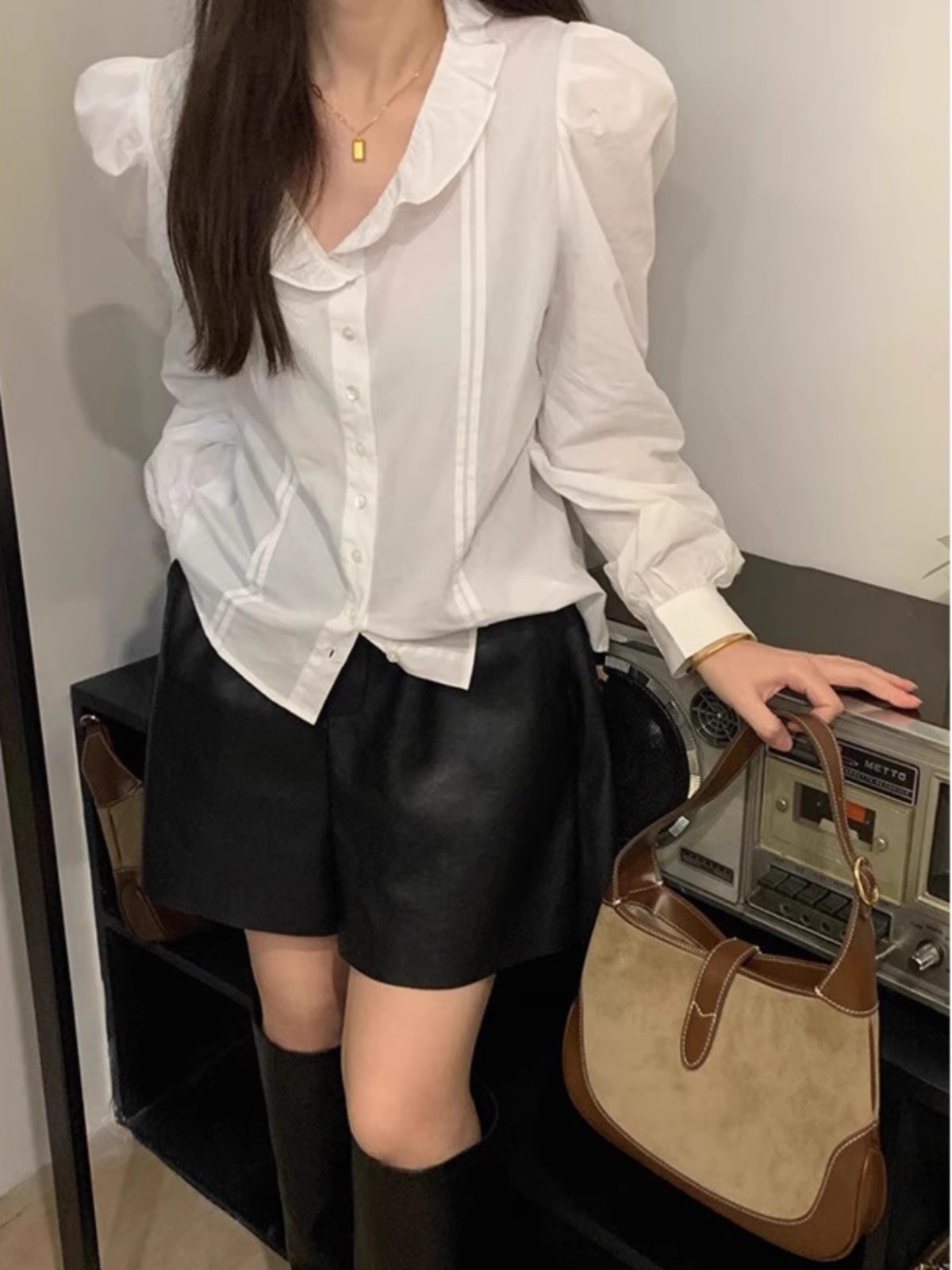 秋季新款小众设计感休闲纯棉白色衬衫荷叶边灯笼袖内搭上衣女
