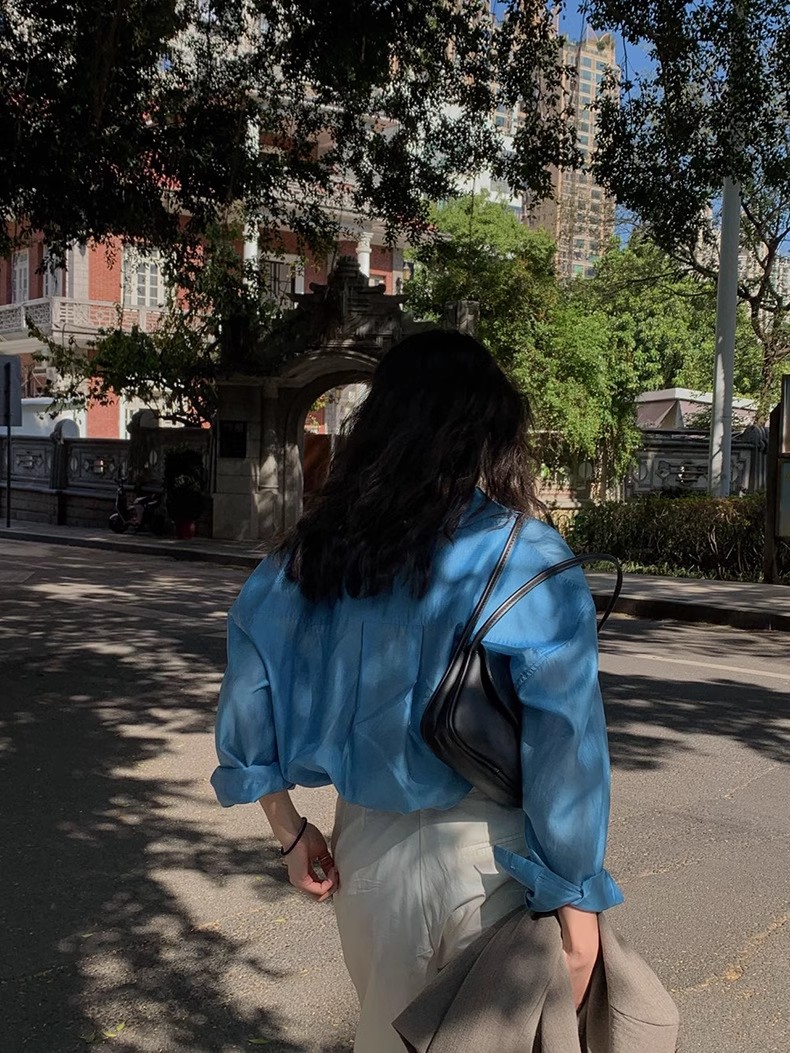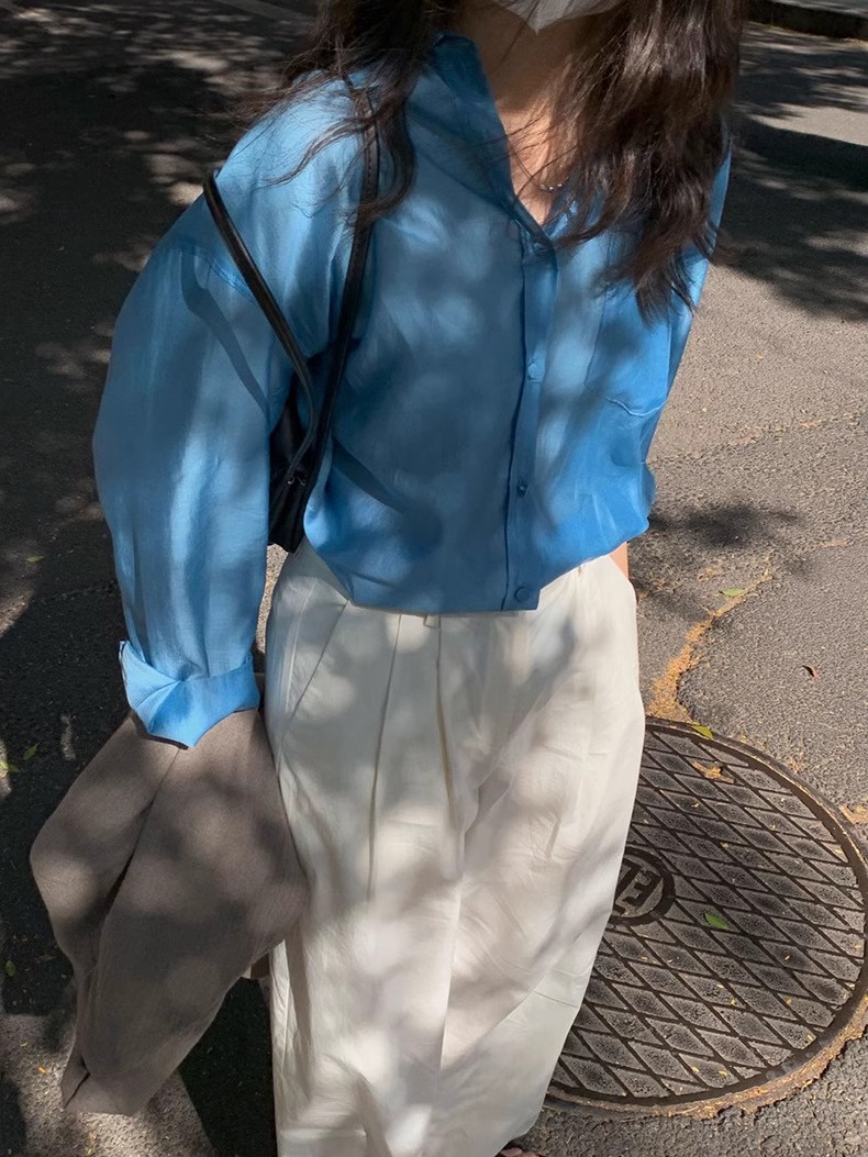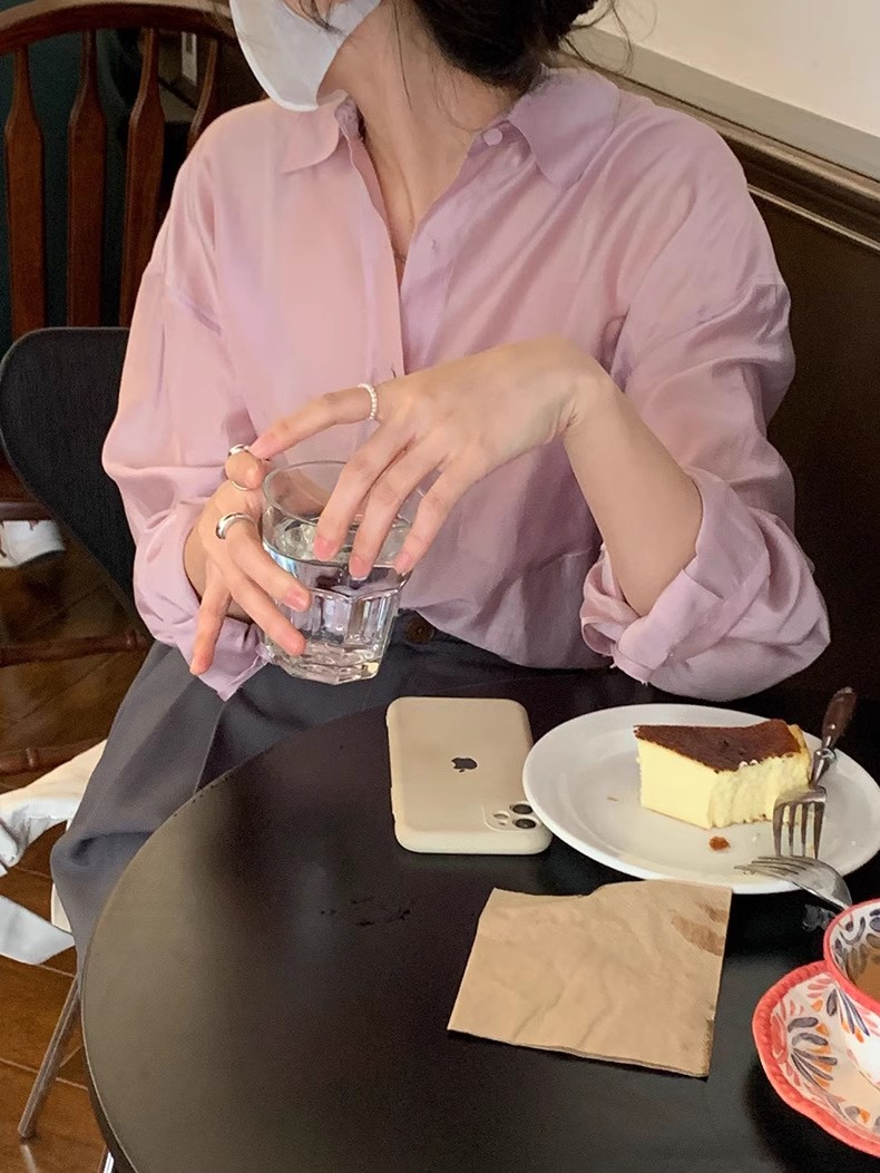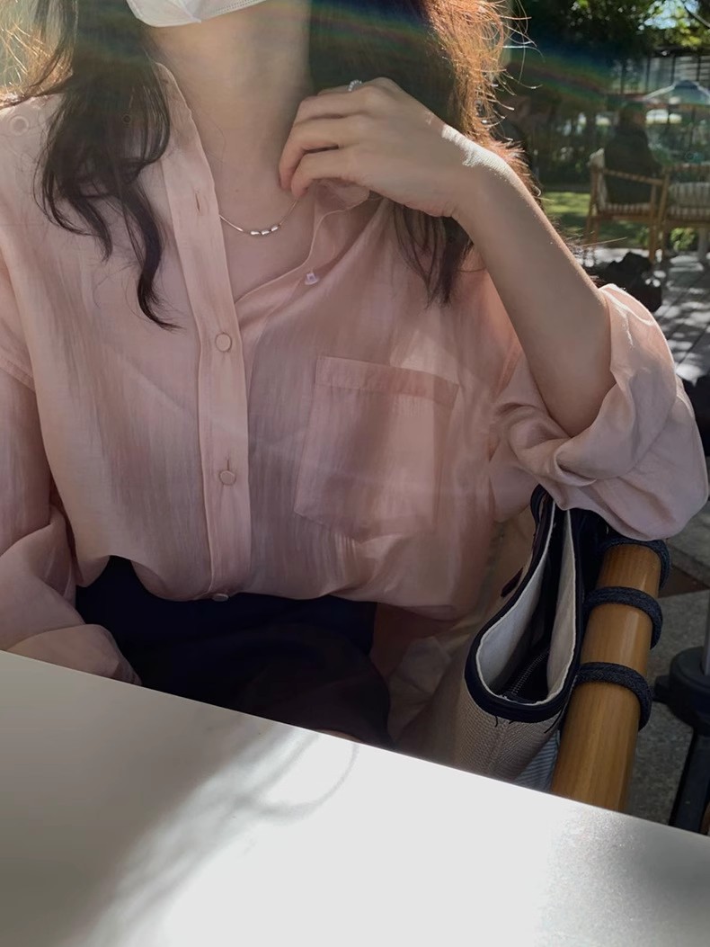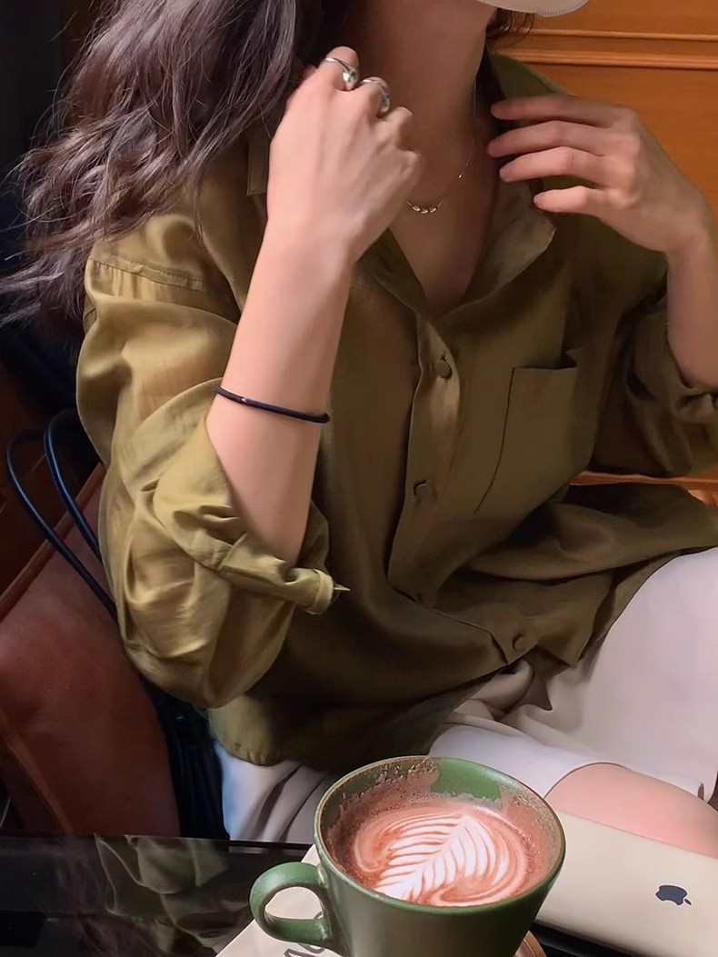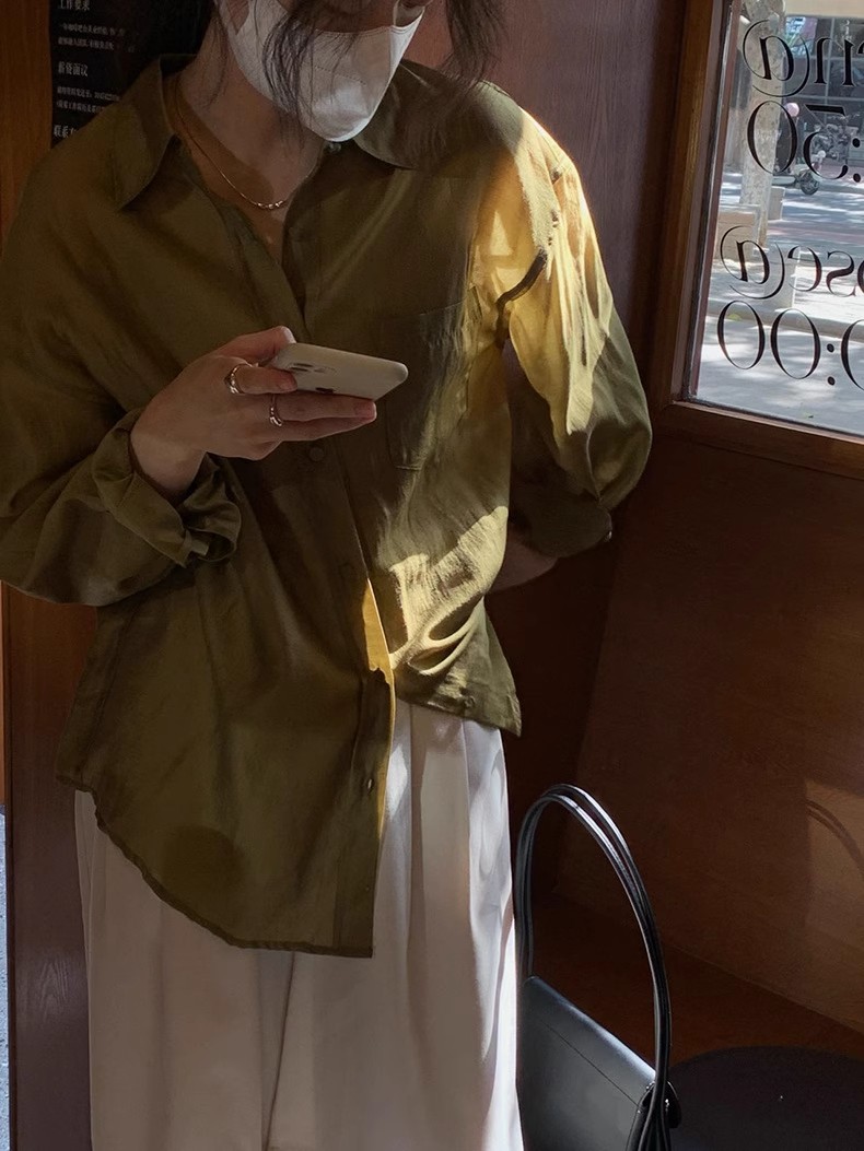 YIMEINIJIA天丝衬衫女新款休闲气质基础百搭纯色薄款长袖上衣