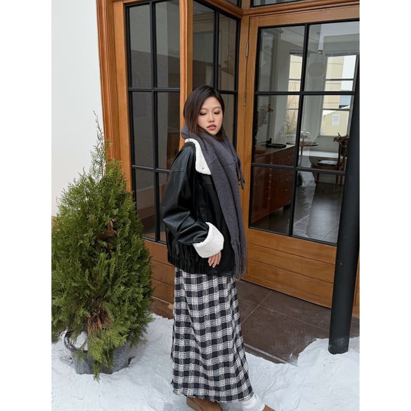 YIMEINIJIA复古格子半身裙女通勤百搭格纹大摆长裙子A字伞裙