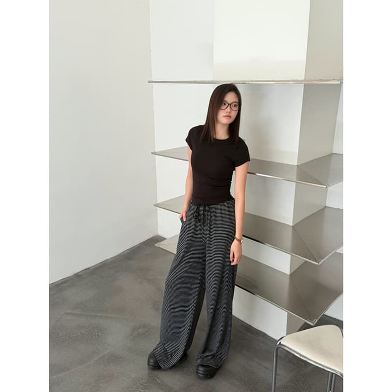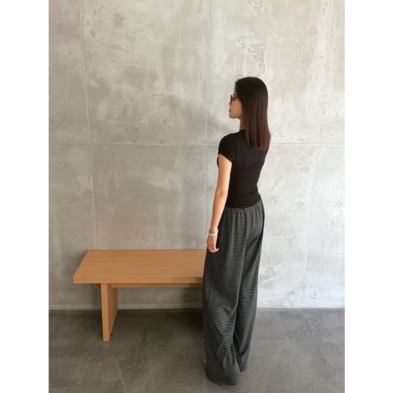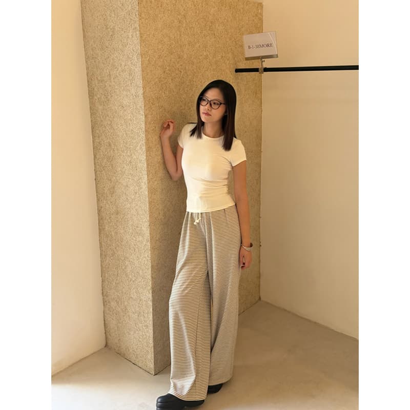 YIMEINIJIA条纹直筒阔腿裤女秋冬垂感显瘦慵懒风百搭运动长裤子